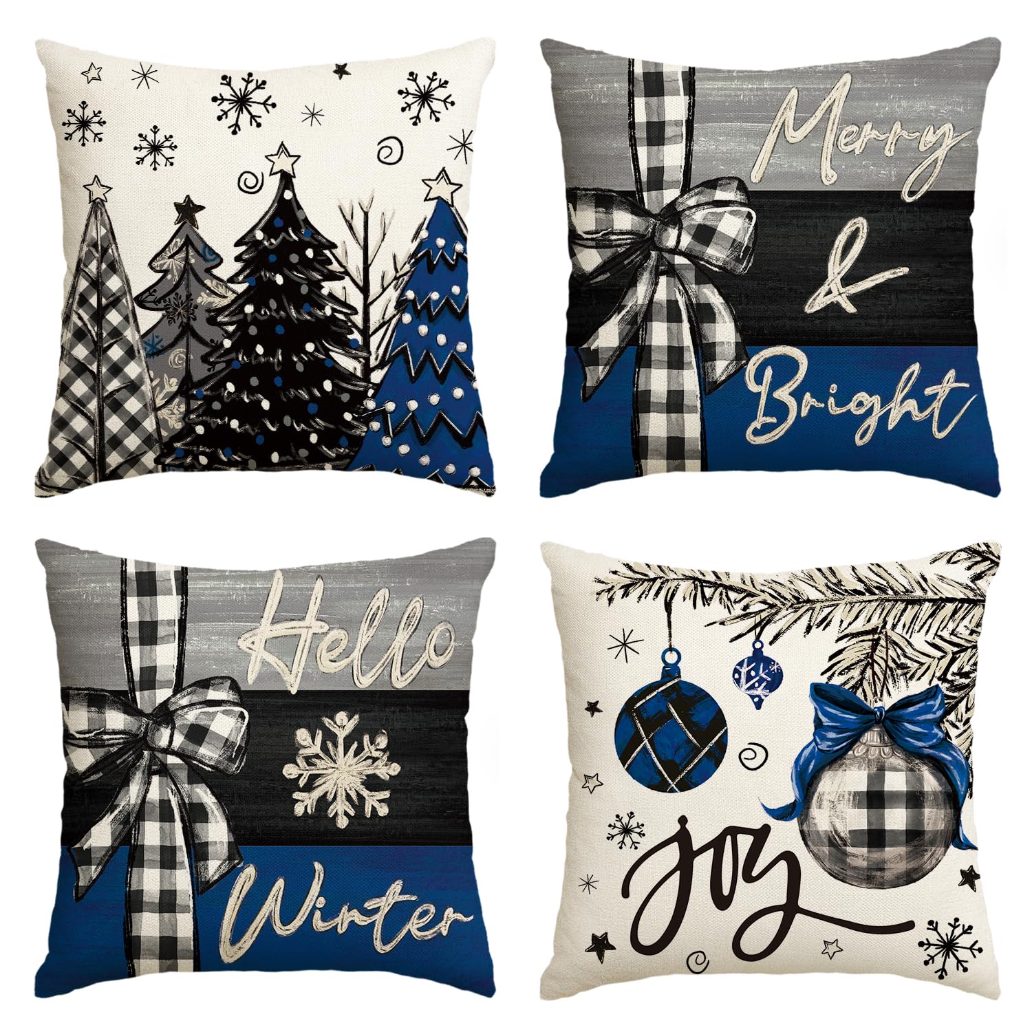Merry Christmas Joy Xmas Trees Red Throw Pillow Covers, 18 x 18 Inch Christmas Winter Holiday Cushion Case Decoration for Sofa Couch Set of 4