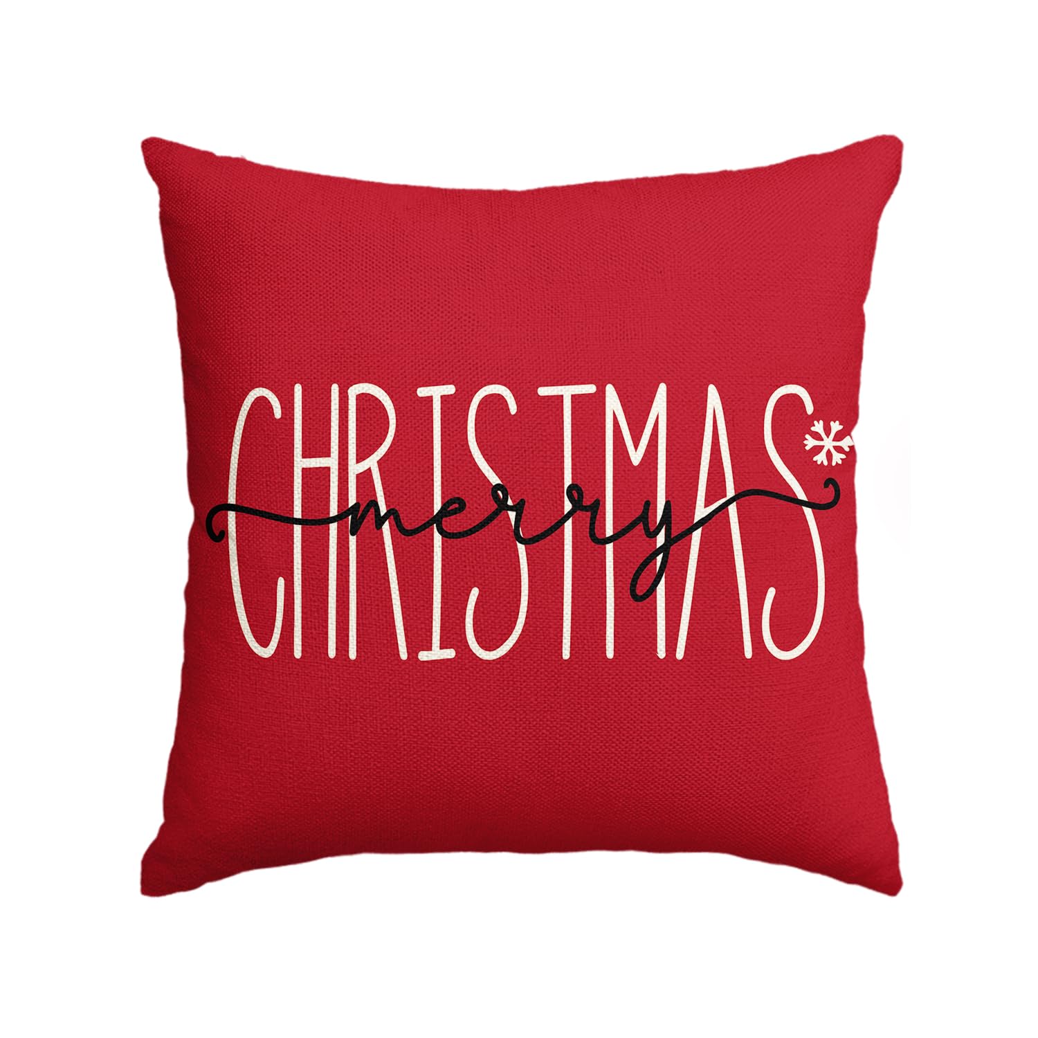 Merry Christmas Red Throw Pillow Cover, 18x18 Inch Winter Holiday Cushion Case Decoration for Sofa Couch