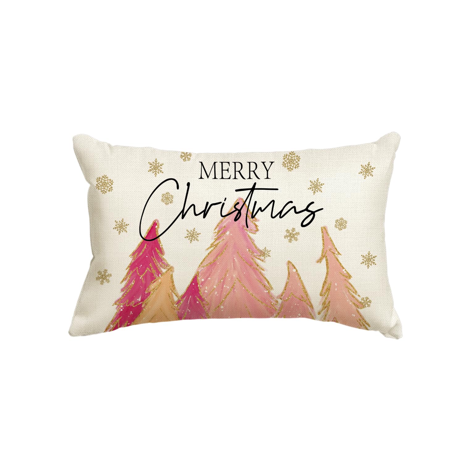 Pink Christmas Tree Merry Christmas Throw Pillow Cover, 12 x 20 Inch Pink Christmas Cushion Case Decoration for Sofa Couch