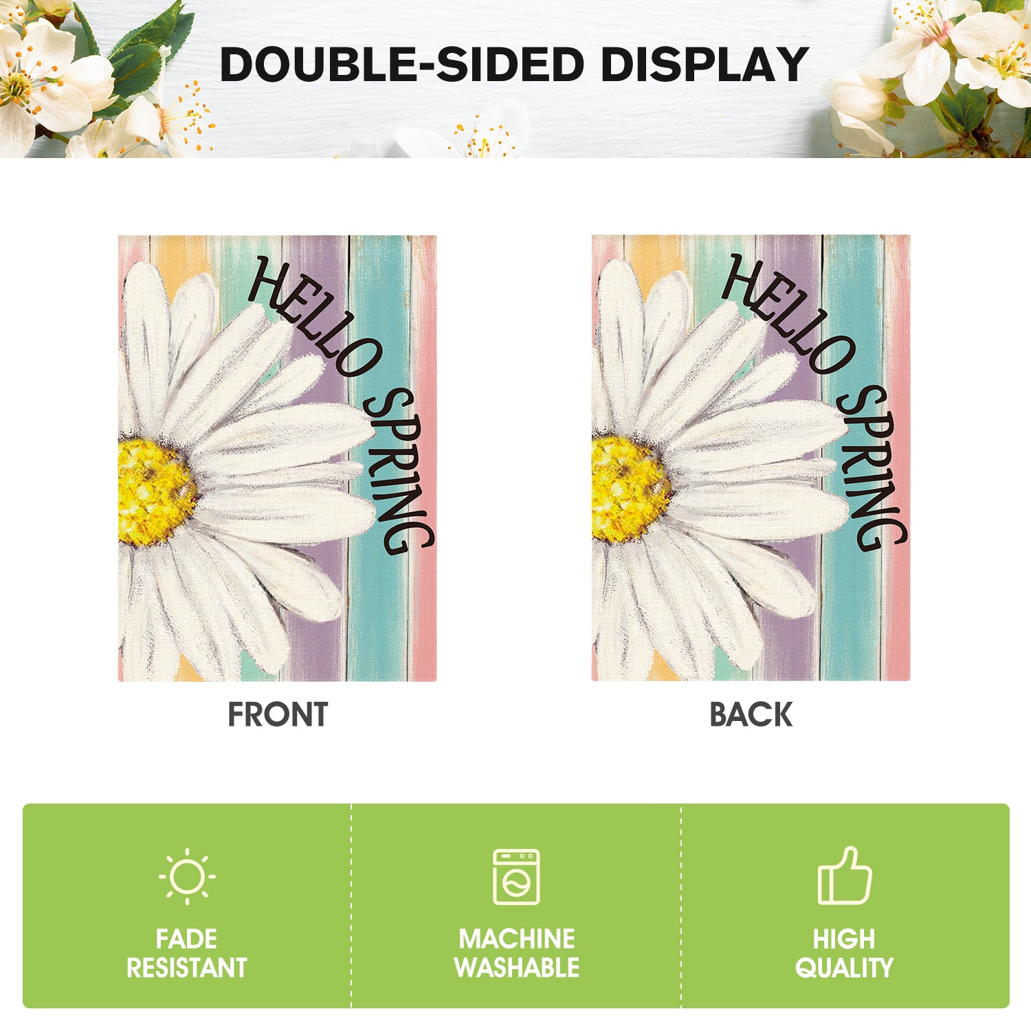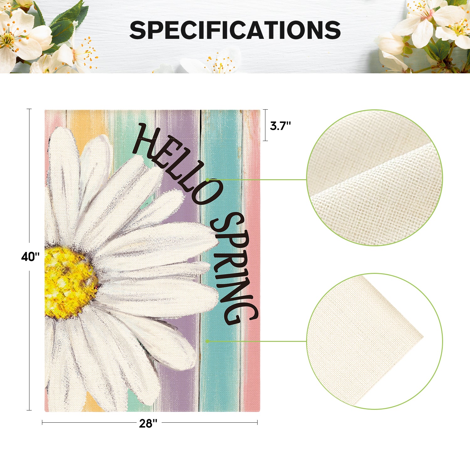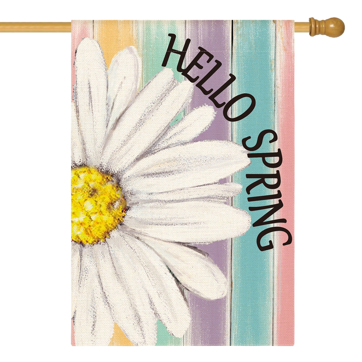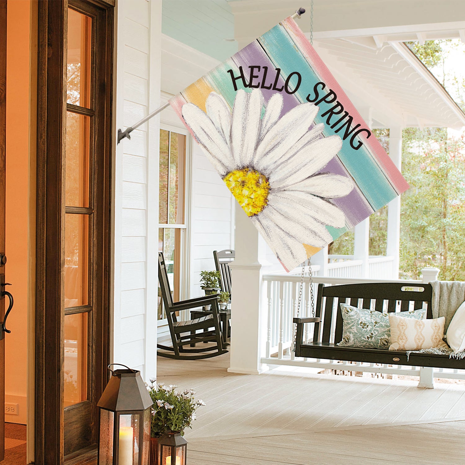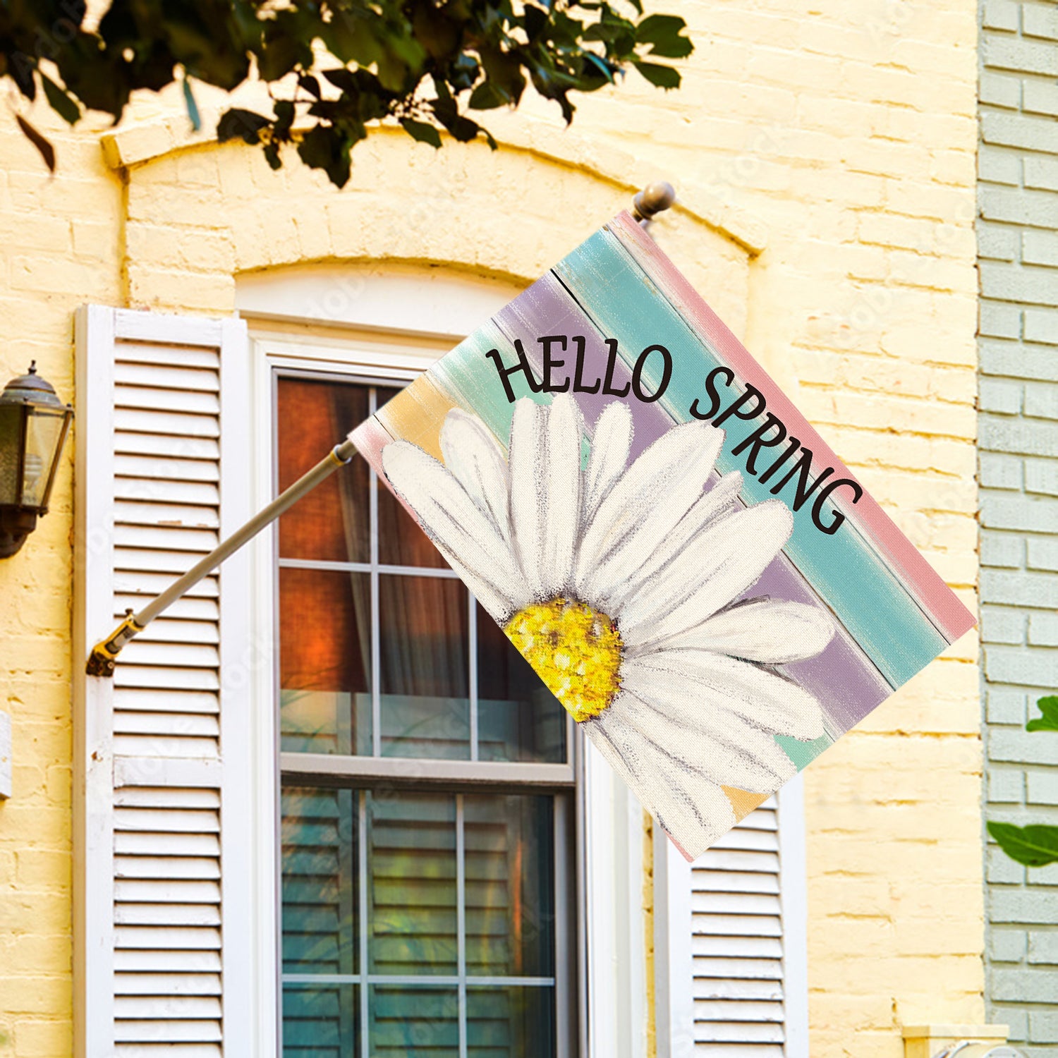 AVOIN colorlife Hello Spring House Flag 28x40 Inch Double Sided Outside, Floral Daisy Yard Outdoor Flag Colorful