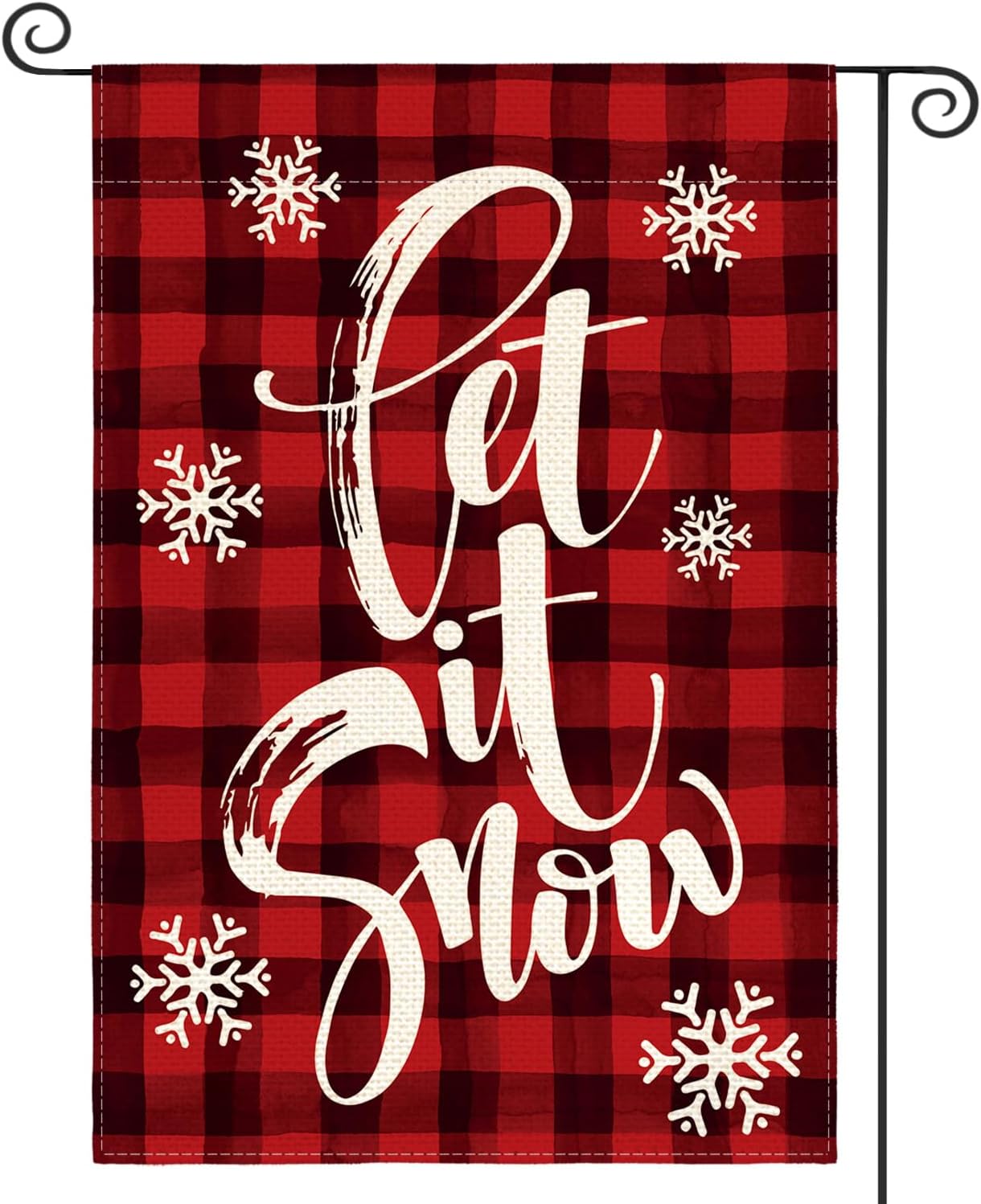 AVOIN colorlife Watercolor Buffalo Plaid Let it Snow Garden Flag Double Sided, Christmas Winter Holiday Yard Outdoor Decorative Flag 12 x 18 Inch