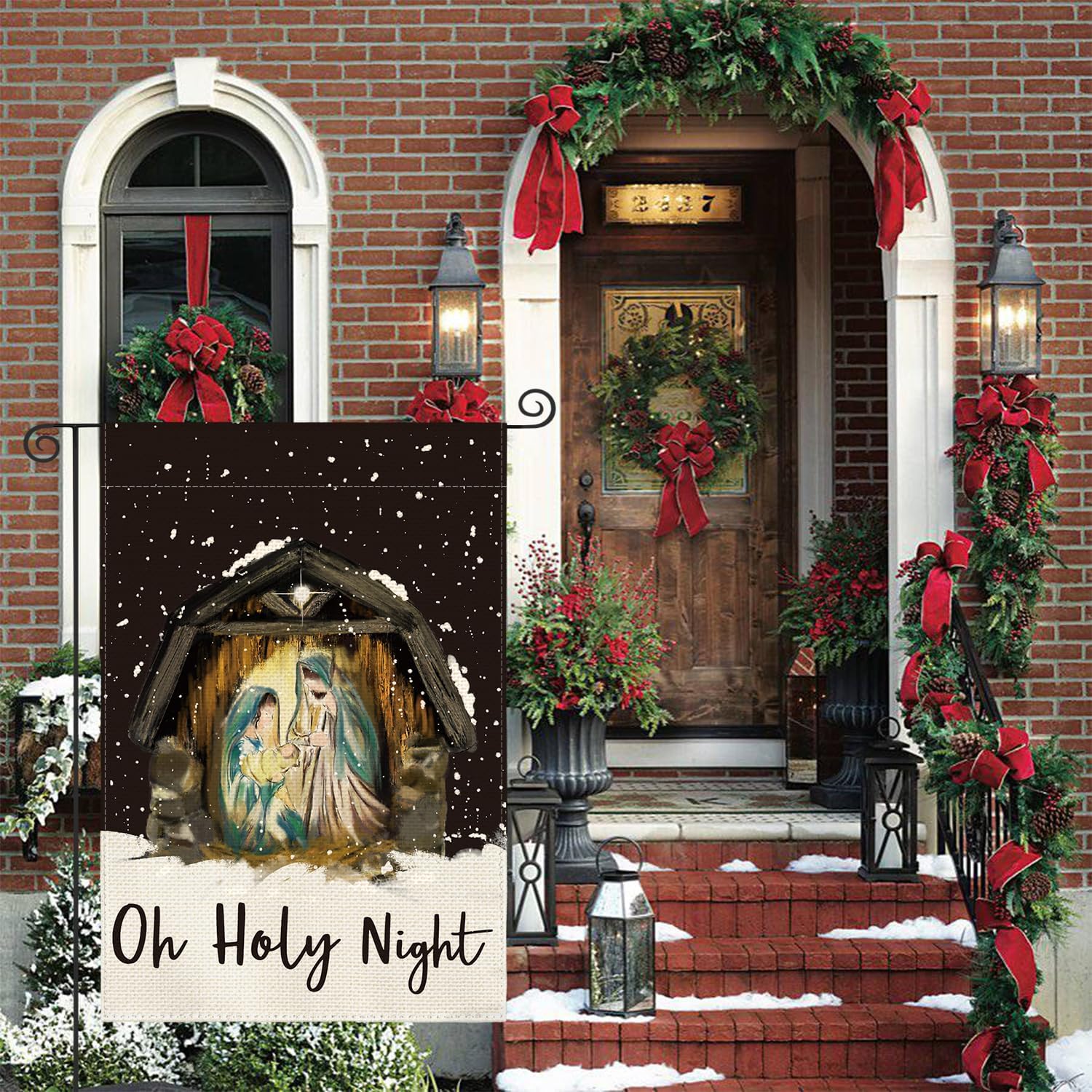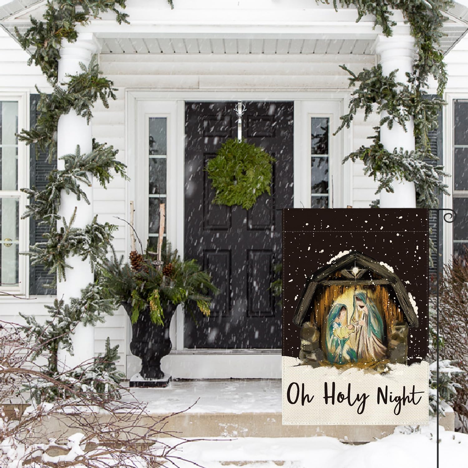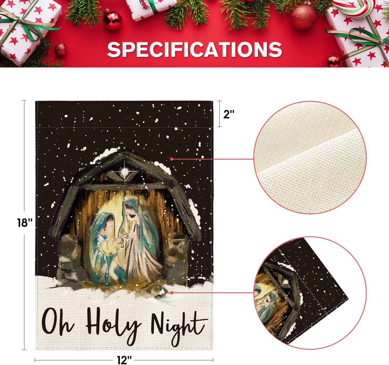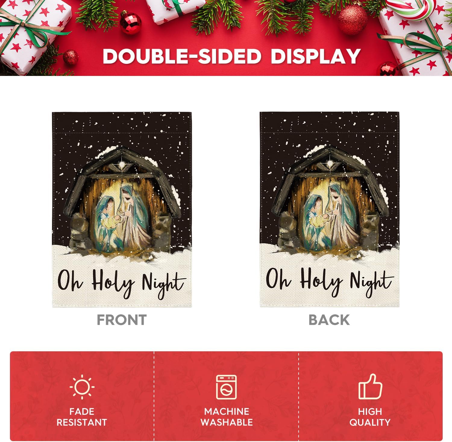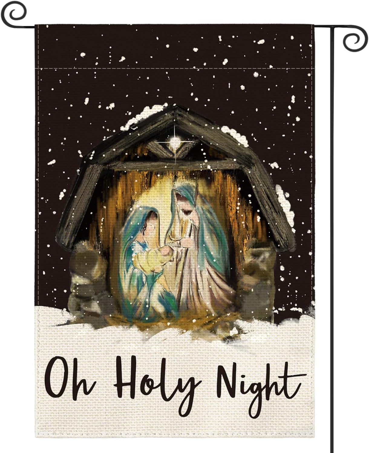 AVOIN colorlife Oh Holy Night Jesus Nativity Garden Flag 12 x 18 Inch Double Sided, Christmas Winter Holiday Christian Yard Outdoor Decorative Flag