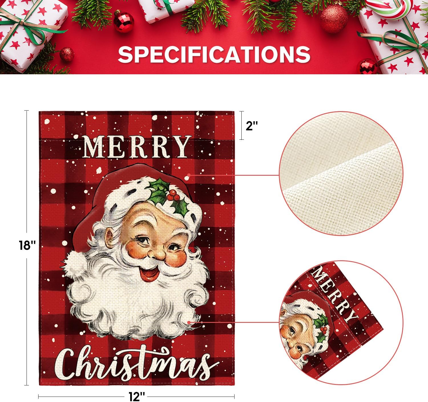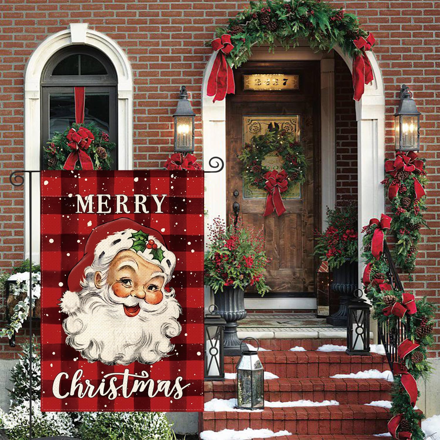 AVOIN colorlife Merry Christmas Santa Claus Garden Flag 12 x 18 Inch Double Sided, Watercolor Buffalo Plaid Winter Holiday Yard Outdoor Decorative Flag
