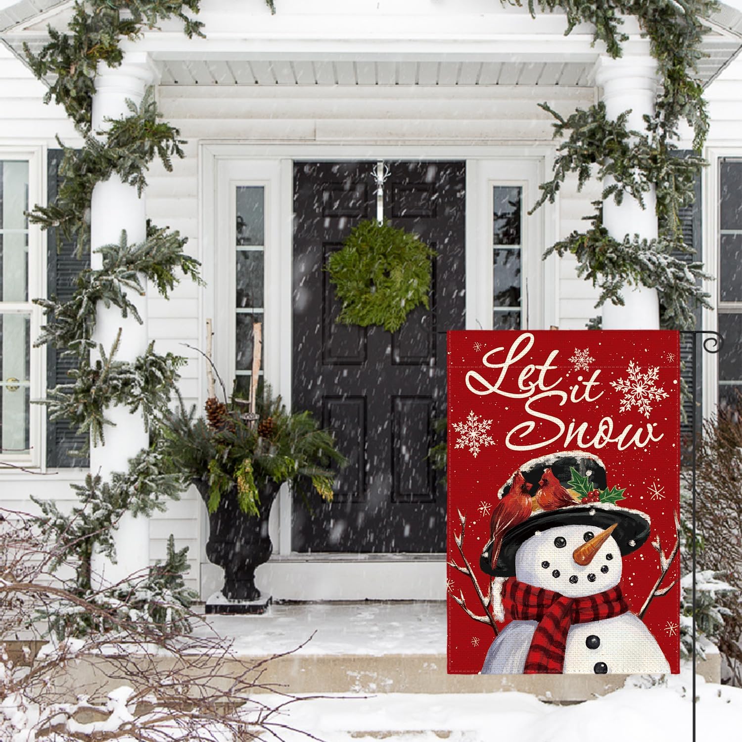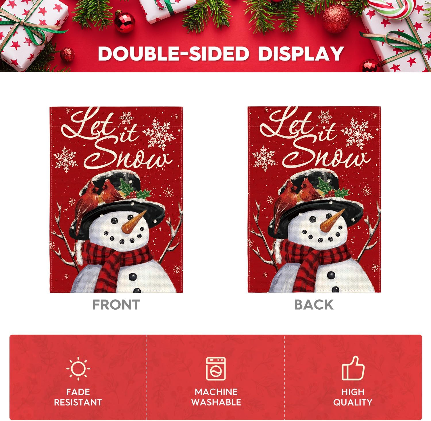 AVOIN colorlife Let It Snow Snowman Snowflake Christmas Garden Flag 12x18 Inch Double Sided, Red Winter Farmhouse Yard Outdoor Decorative Flag