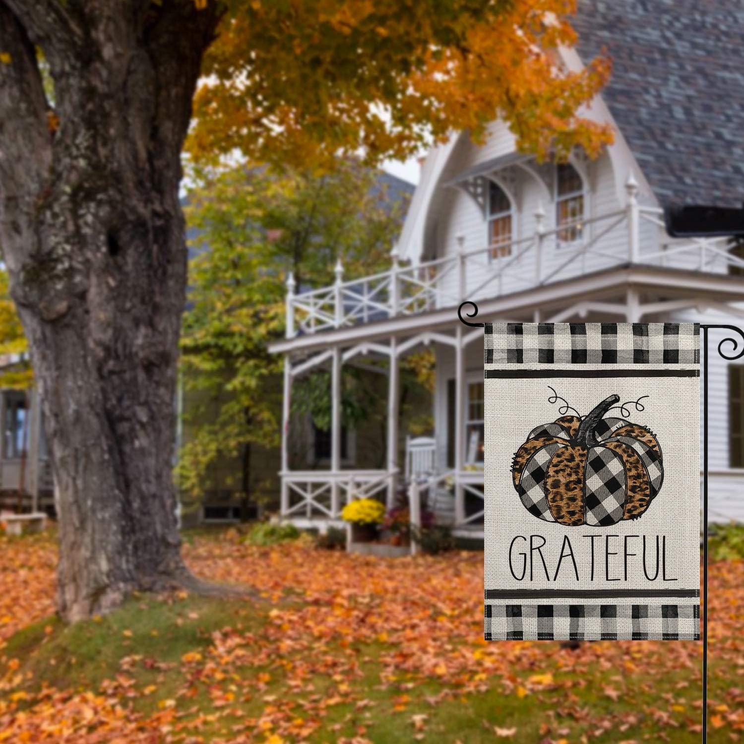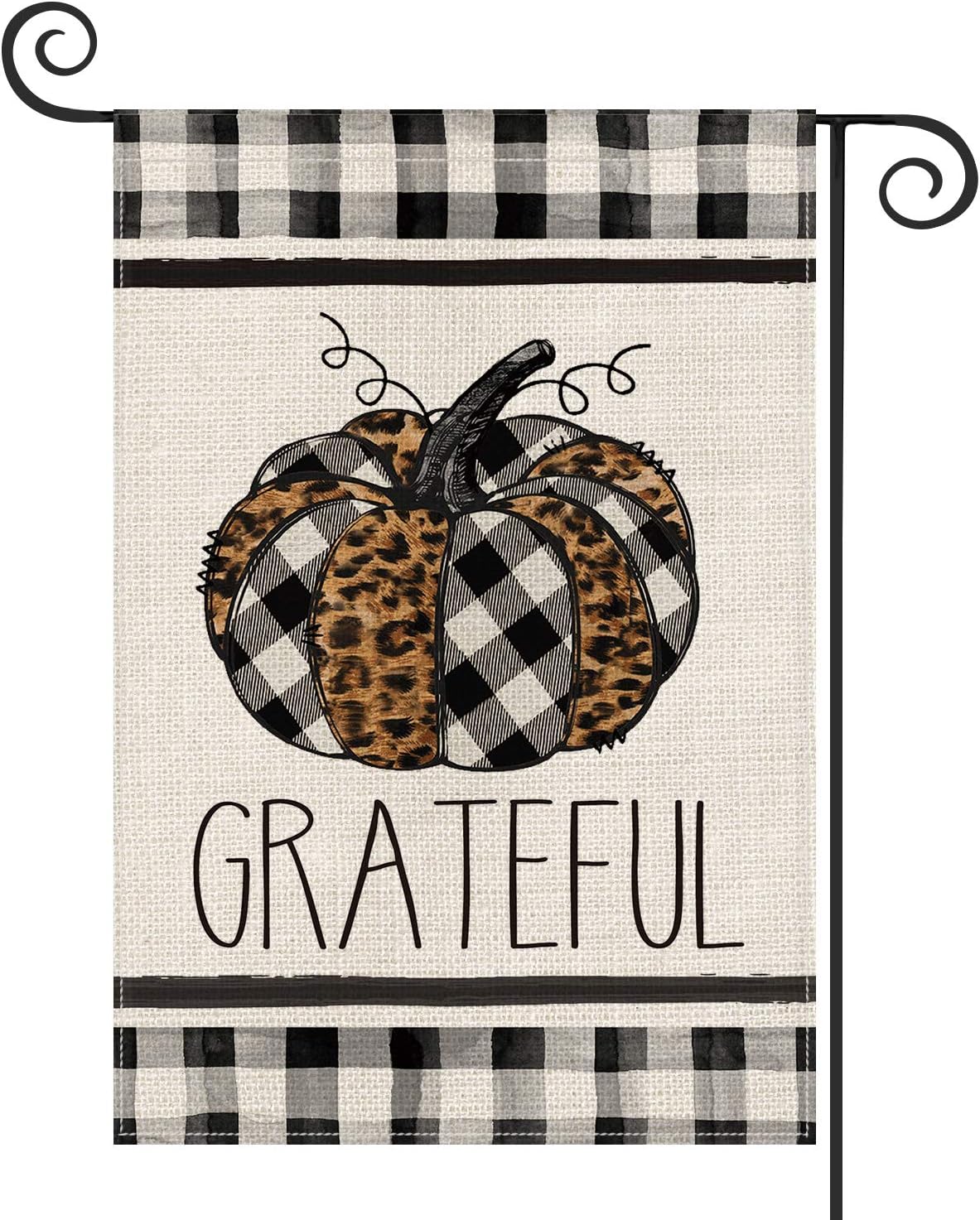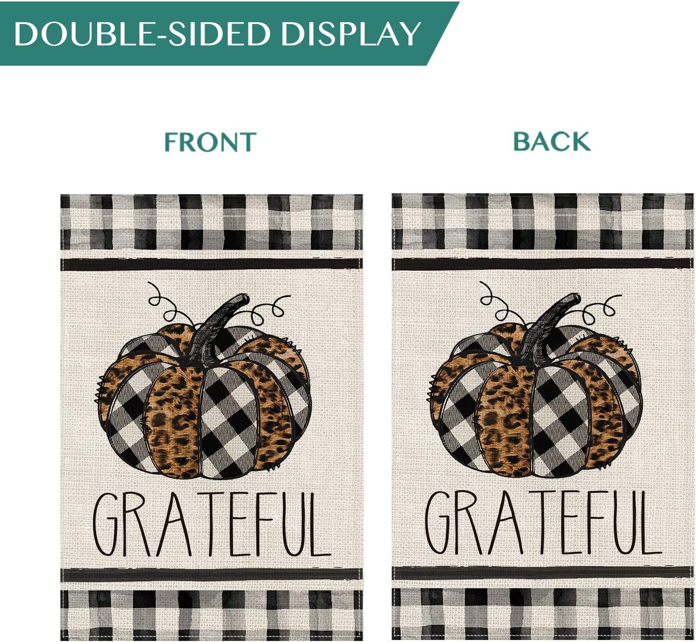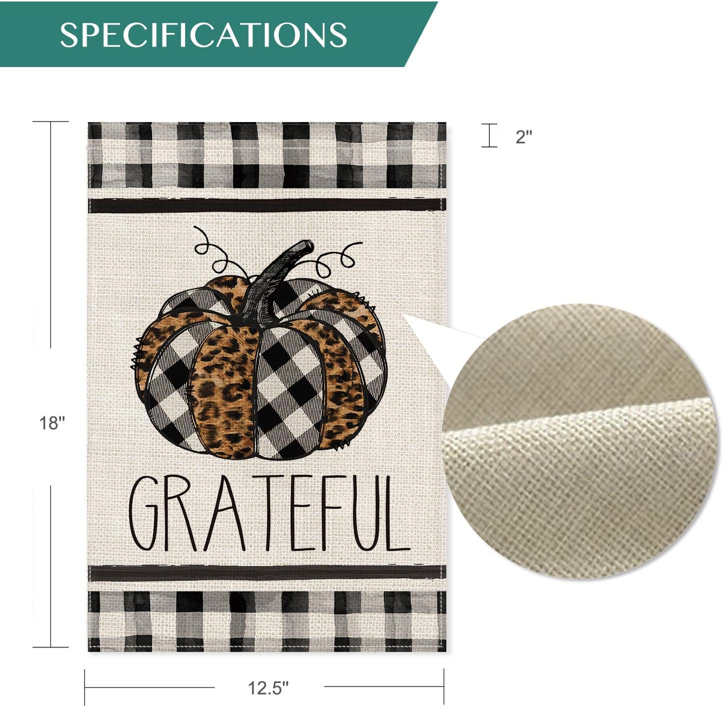 AVOIN Fall Grateful Watercolor Buffalo Check Plaid Leopard Pumpkin Garden Flag Vertical Double Sized, Seasonal Autumn Thanksgiving Yard Outdoor Decoration 12.5 x 18 Inch
