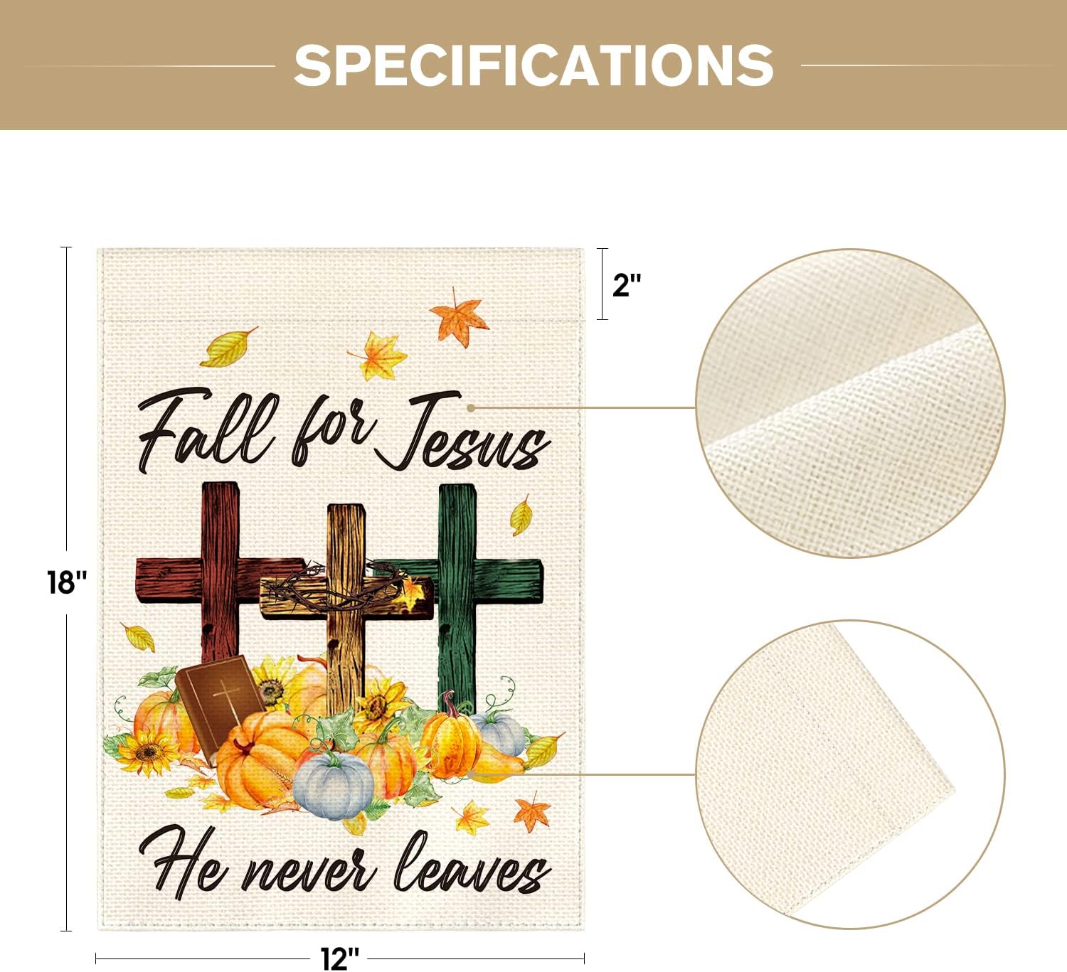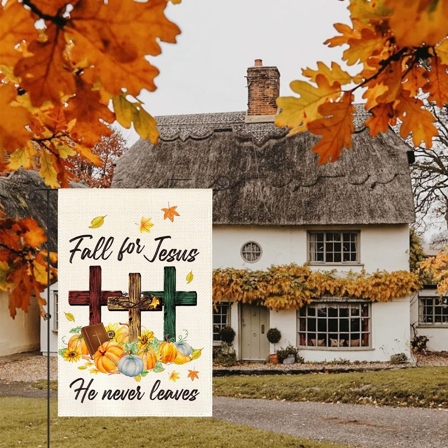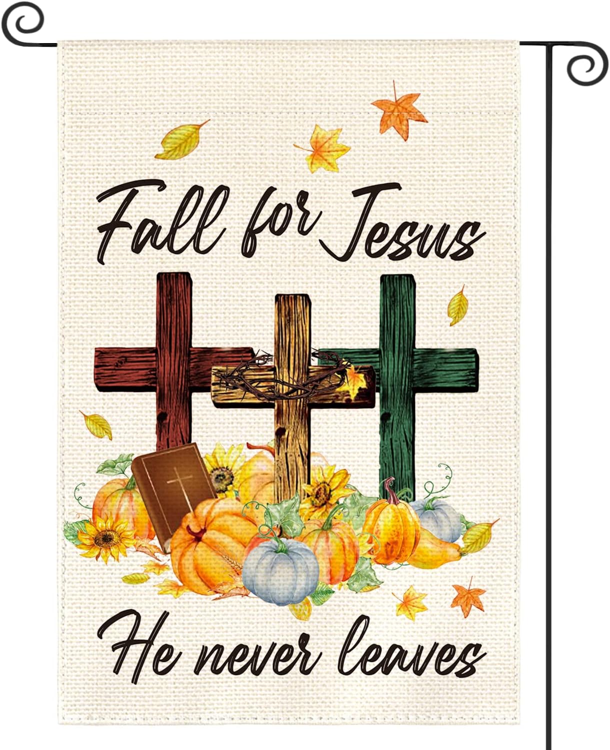 AVOIN colorlife Fall For Jesus He Never leaves Garden Flag 12 x 18 Inch Double Sided Outside, Pumpkin Bible Cross Thanksgiving Holiday Yard Outdoor Decorative Flag