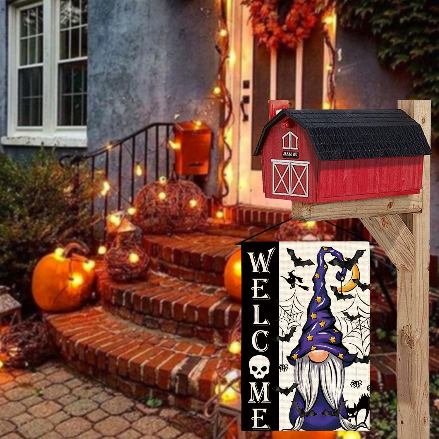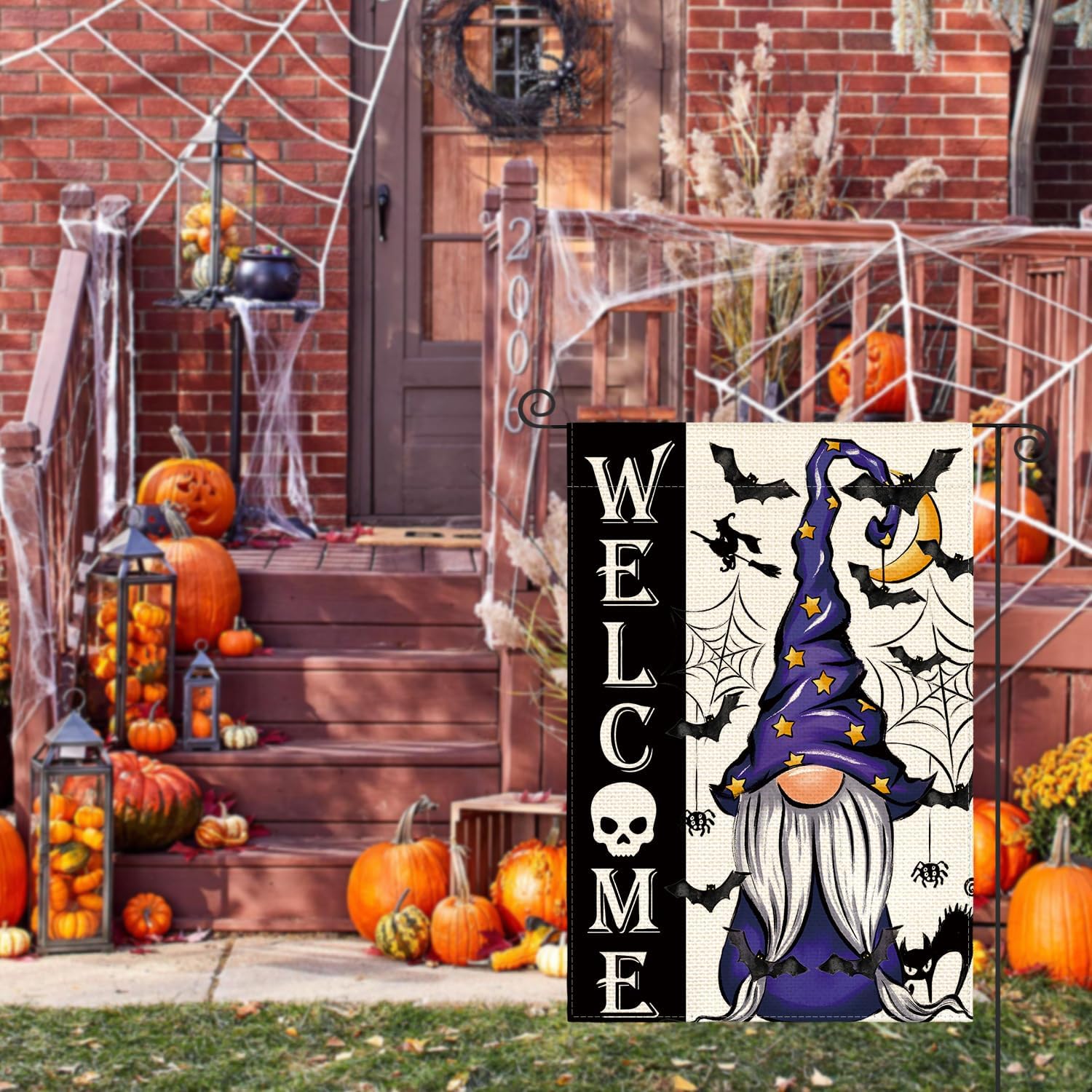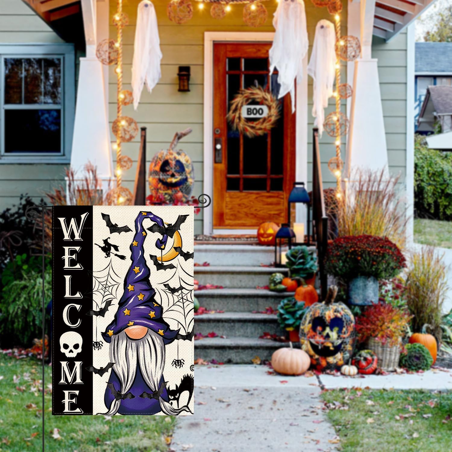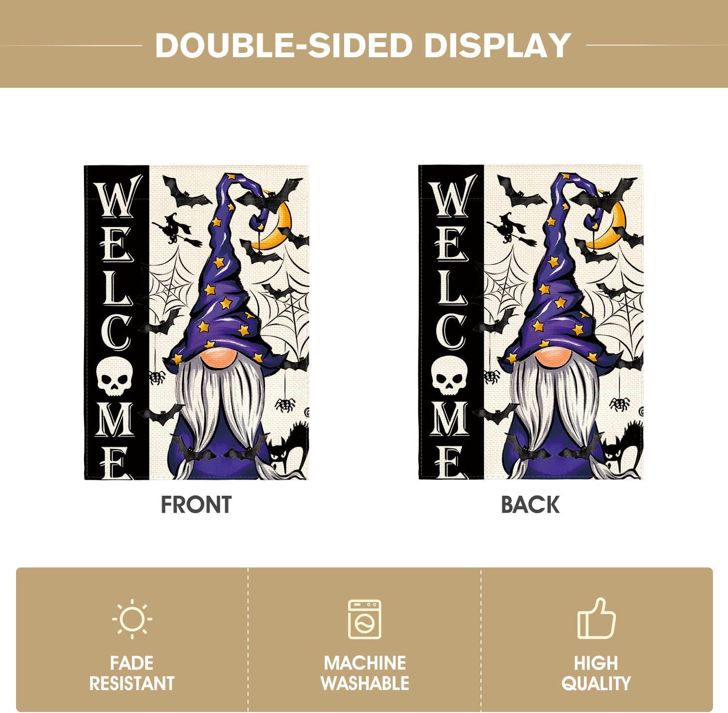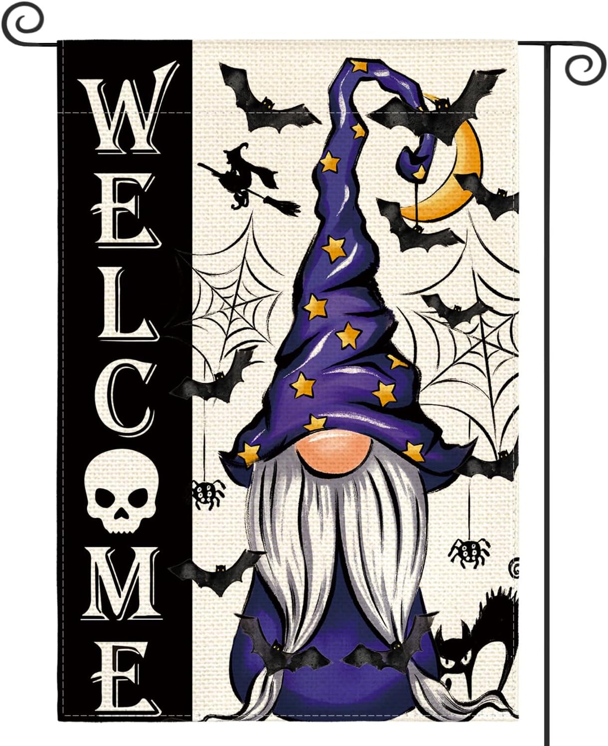 AVOIN colorlife Halloween Welcome Garden Flag Double Sided, Gnome Witch Bat Holiday Yard Party Outdoor Decorative Flag 12x18 Inch