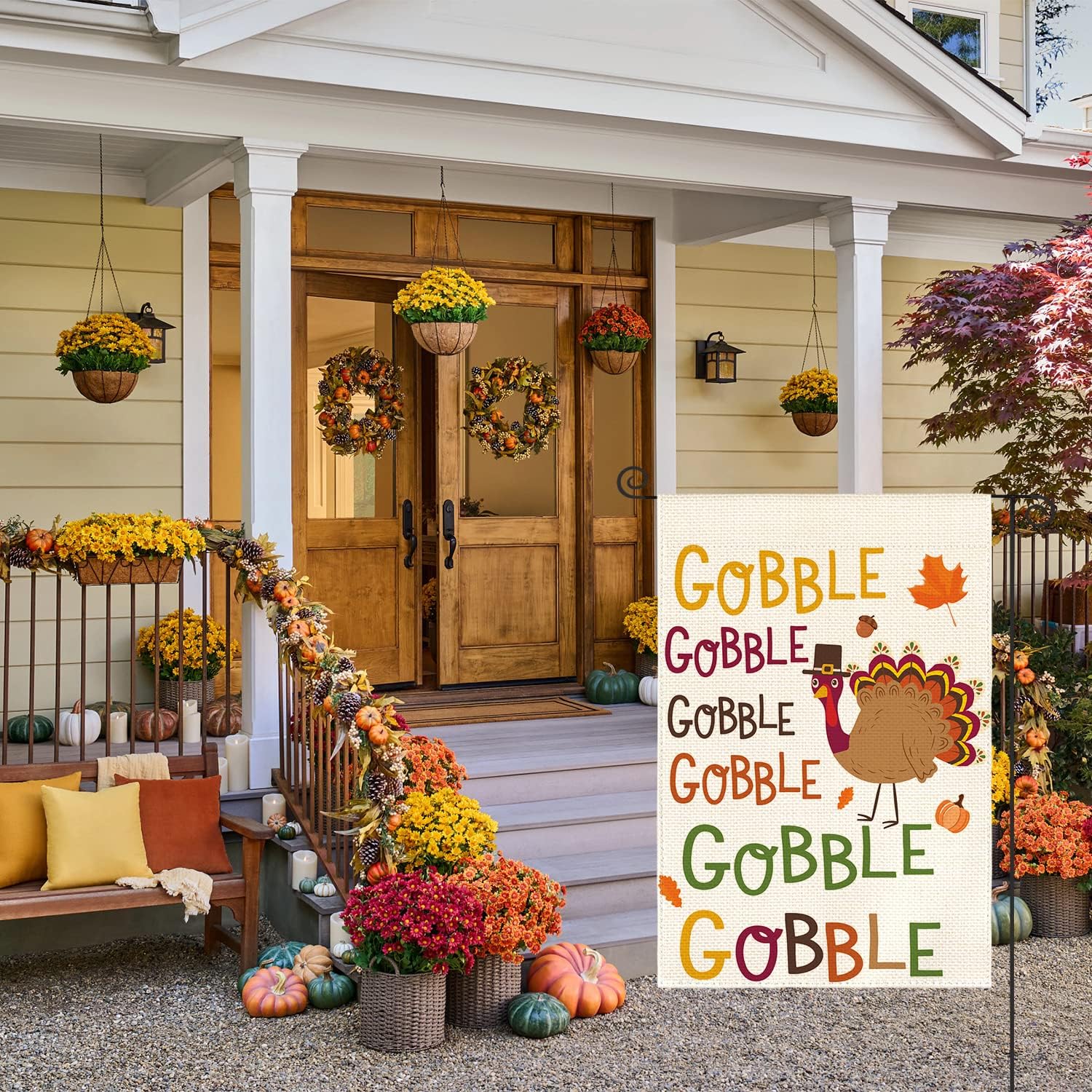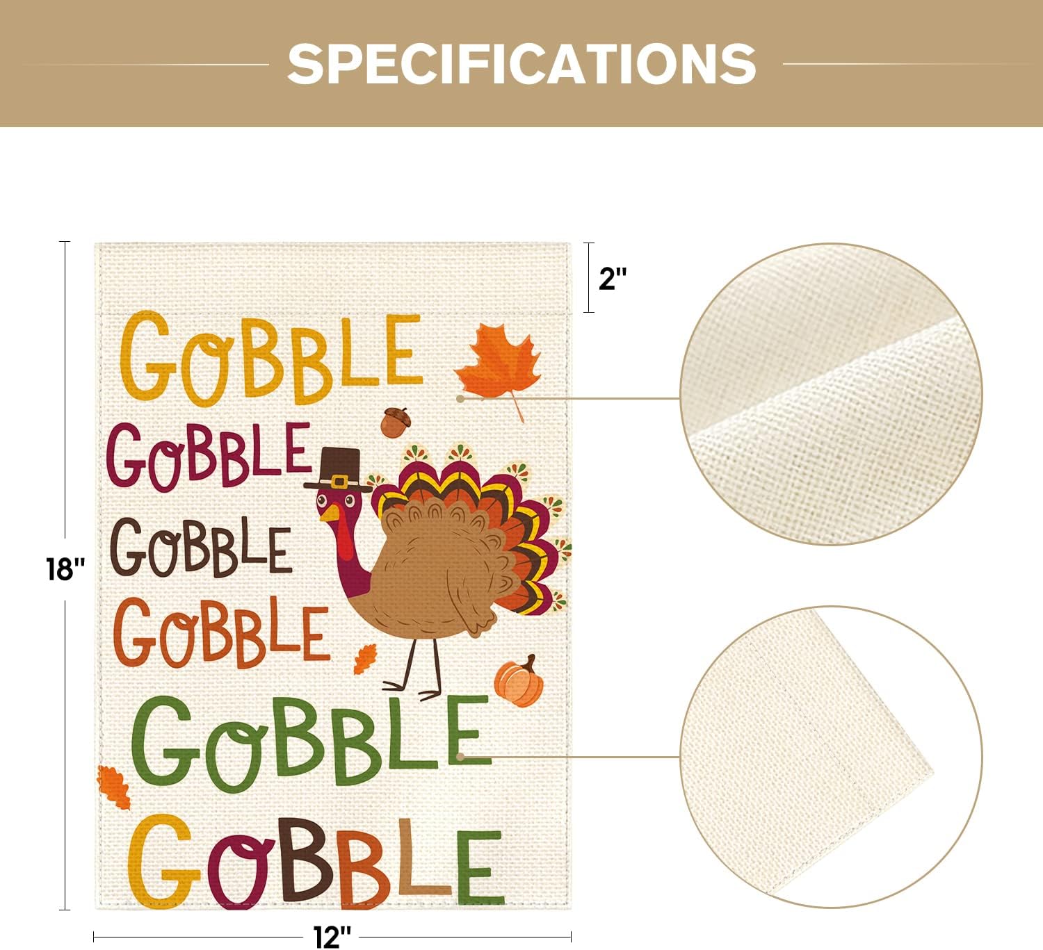 AVOIN colorlife Gobble Gobble Turkey Garden Flag 12 x 18 Inch Double Sided, Fall Thanksgiving Yard Outdoor Decorative Flag