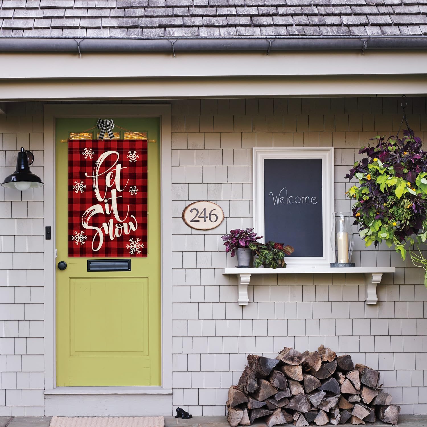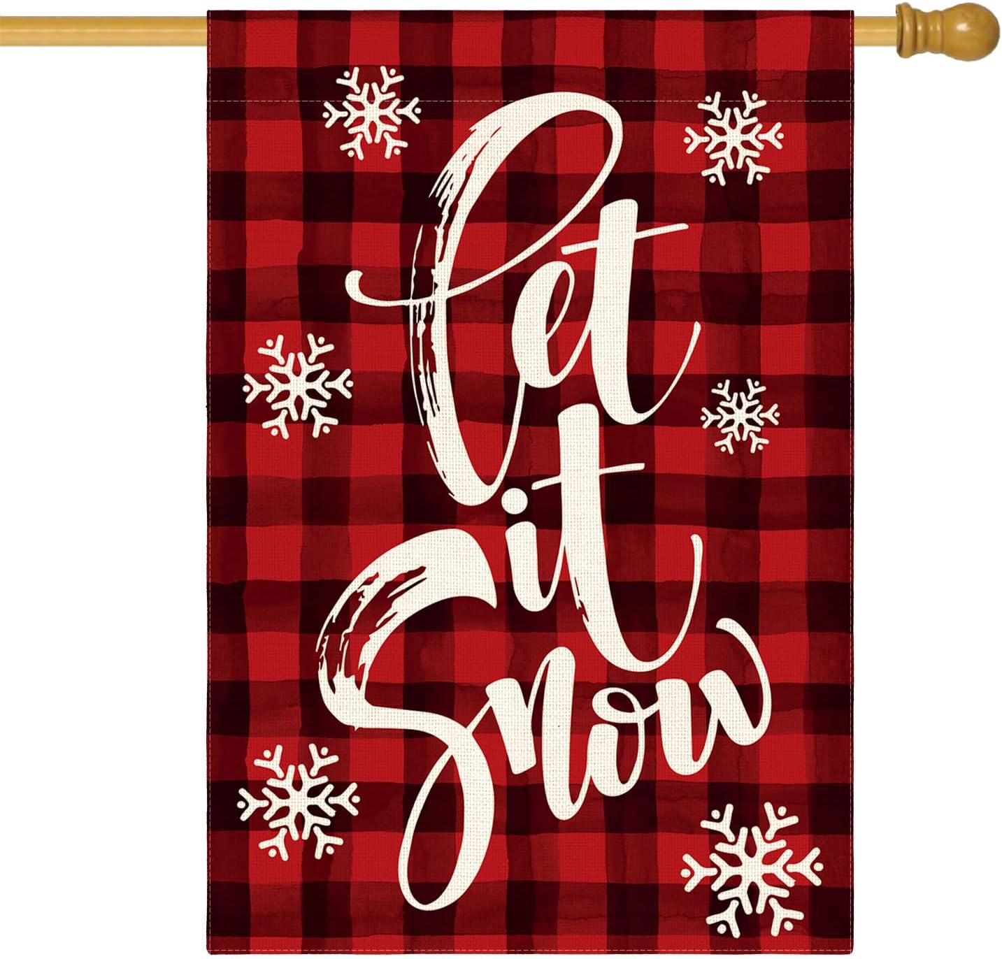 AVOIN colorlife Watercolor Buffalo Plaid Let it Snow House Flag Double Sided, Christmas Winter Holiday Yard Outdoor Decorative Flag 28 x 40 Inch