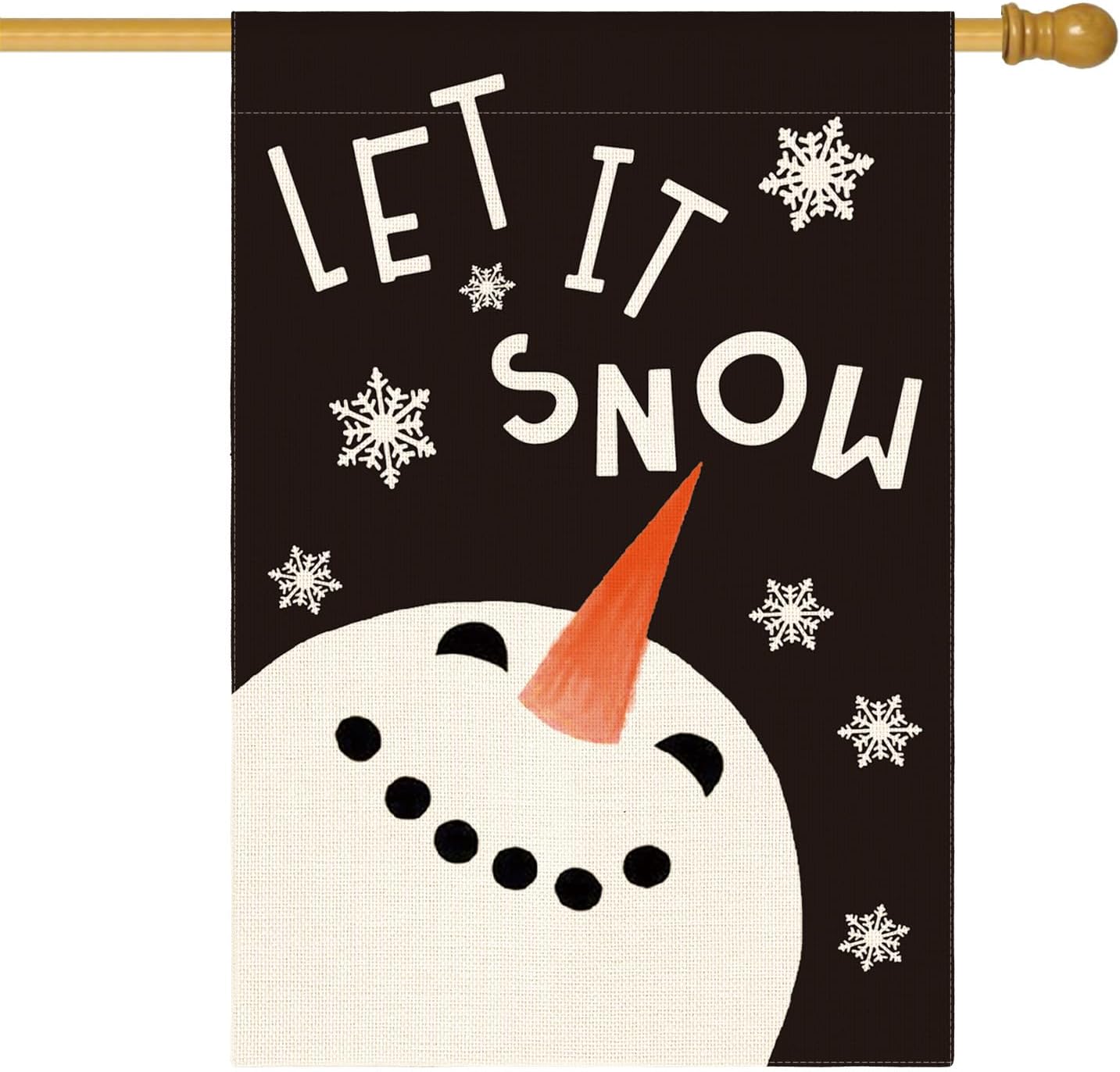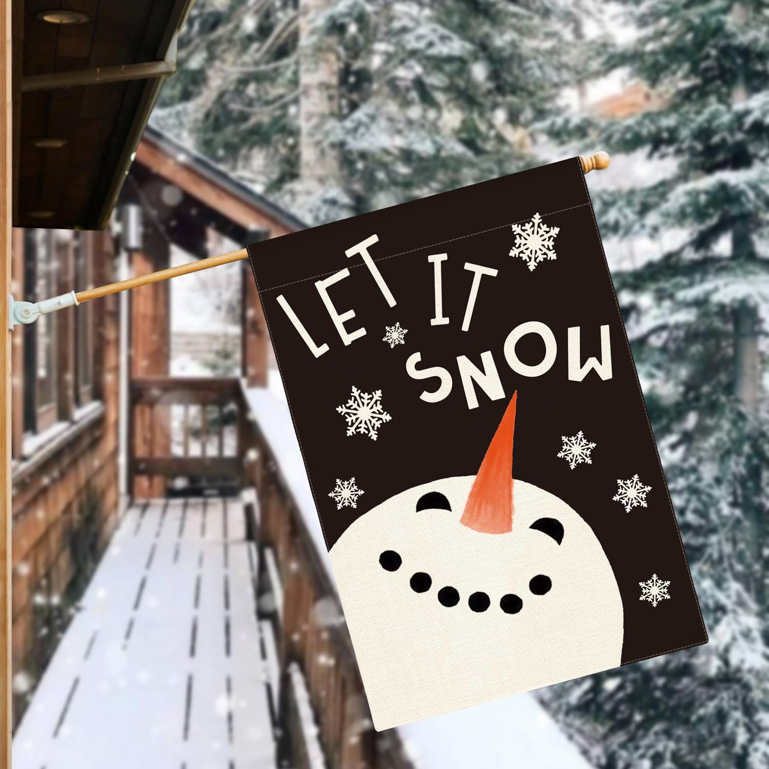 AVOIN colorlife Let It Snow Snowman Snowflake House Flag 28 x 40 Inch Double Sided Outside, Christmas Winter Holiday Yard Outdoor Decorative Flag