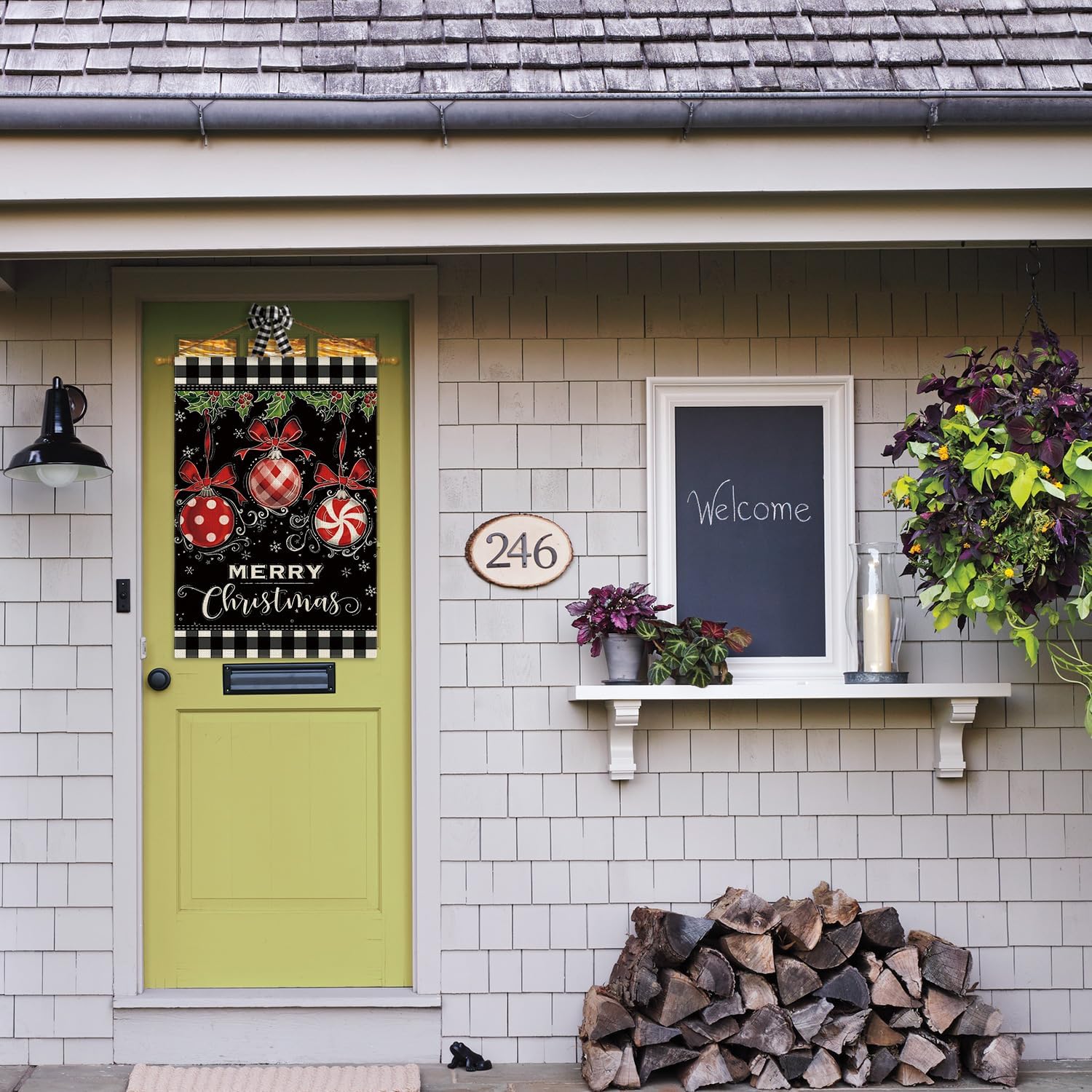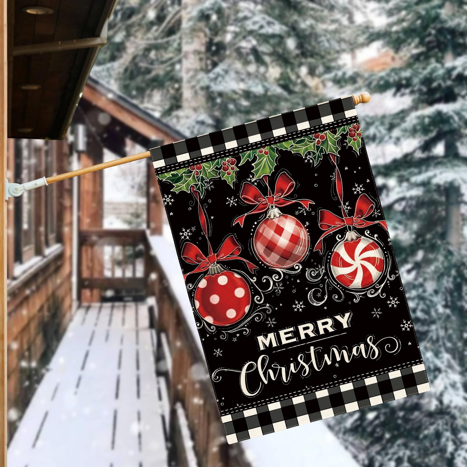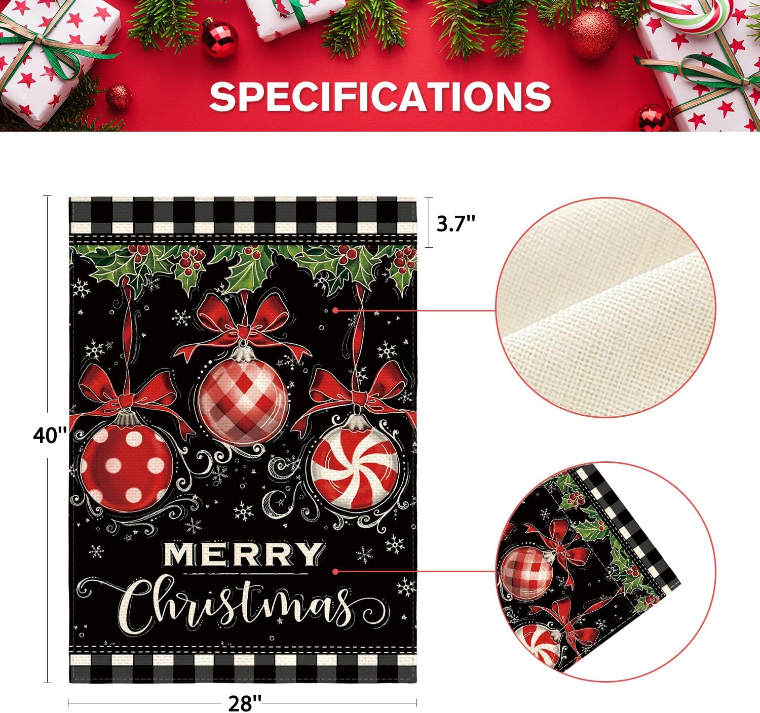 AVOIN colorlife Buffalo Plaid Merry Christmas House Flag 28x40 Inch Double Sided, Ornament Holly Berries Winter Farmhouse Yard Outdoor Decorative Flag