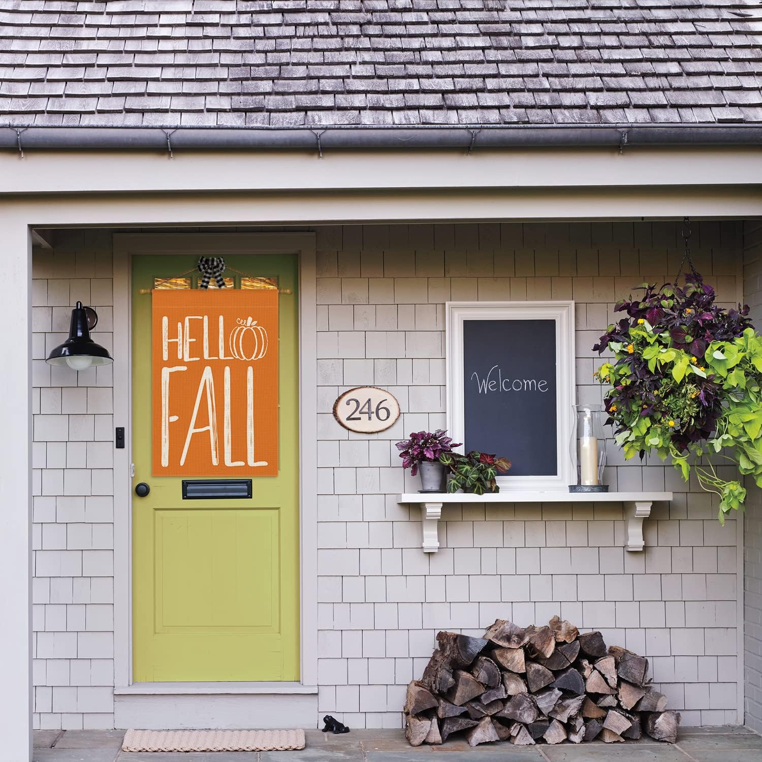 AVOIN colorlife Hello Fall Pumpkin House Flag 28x40 Inch Double Sided Outside, Autumn Seasonal Rustic Yard Outdoor Decorative Flag