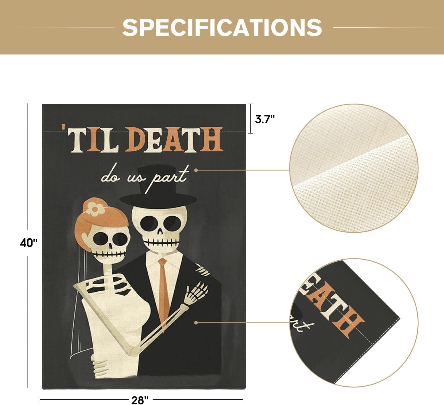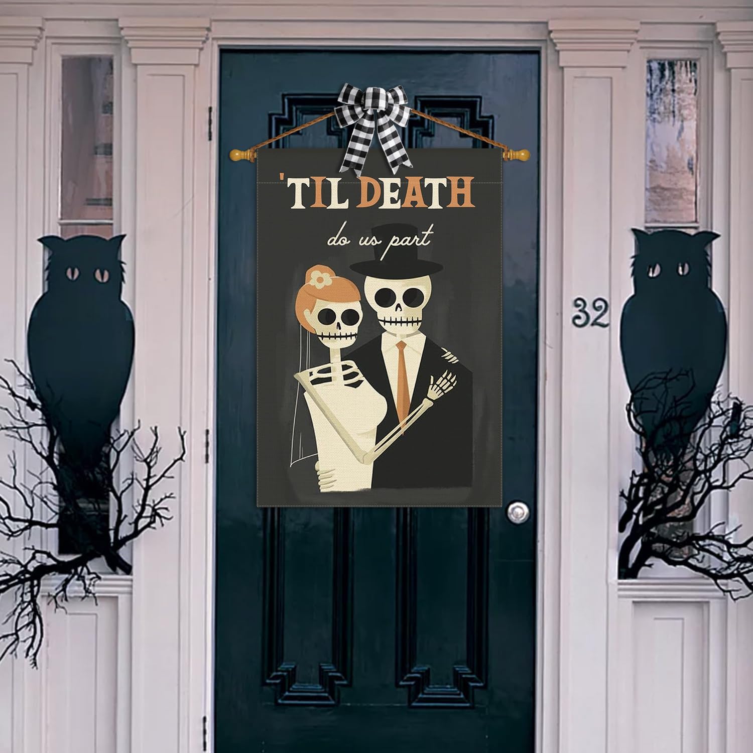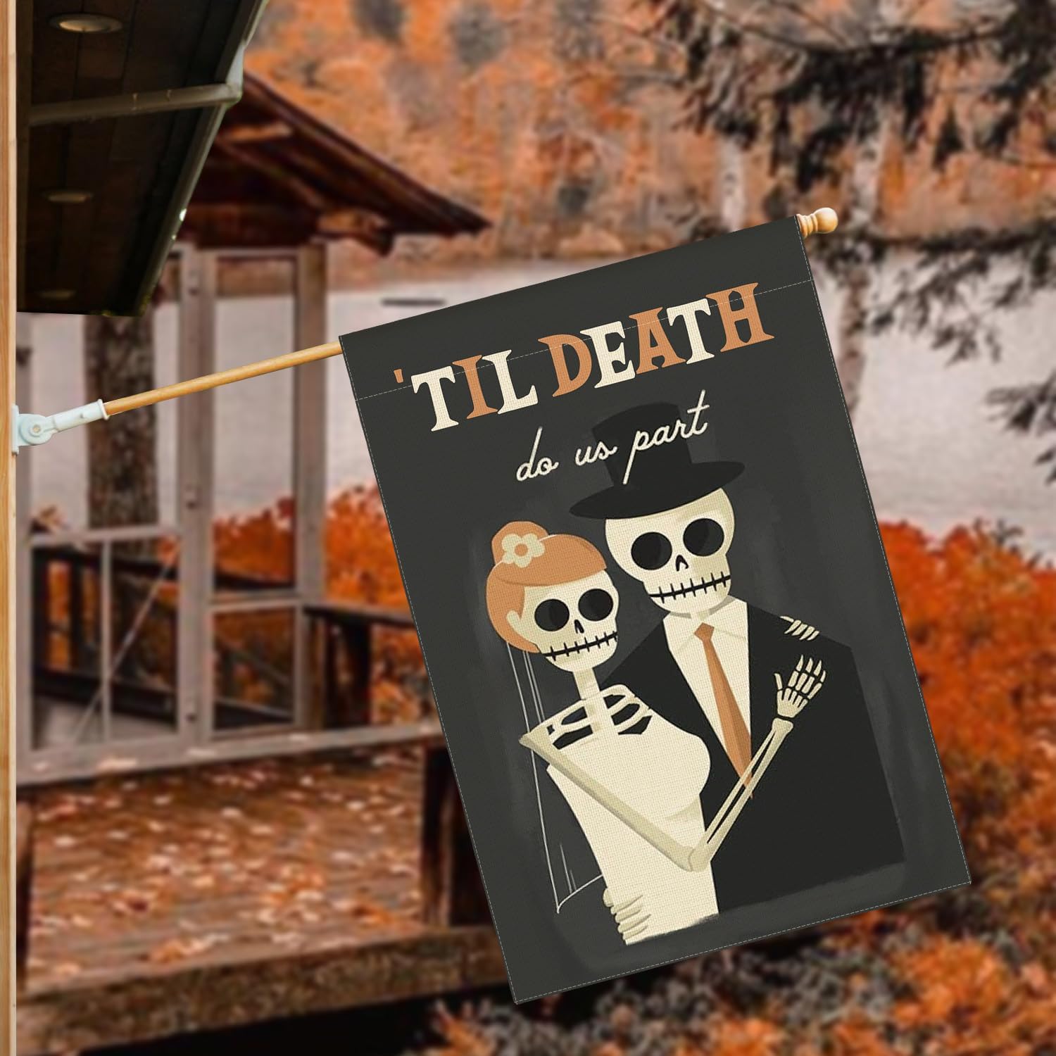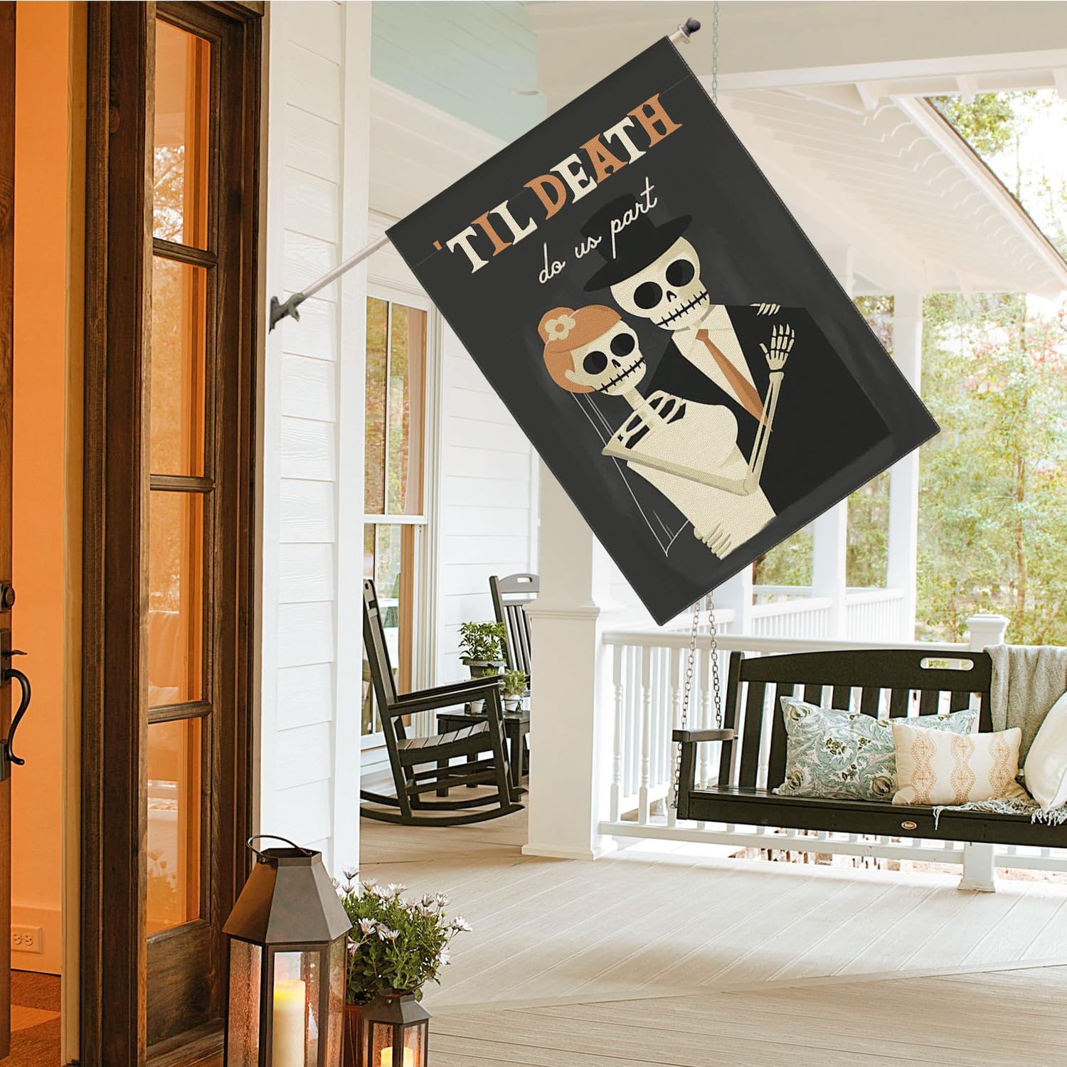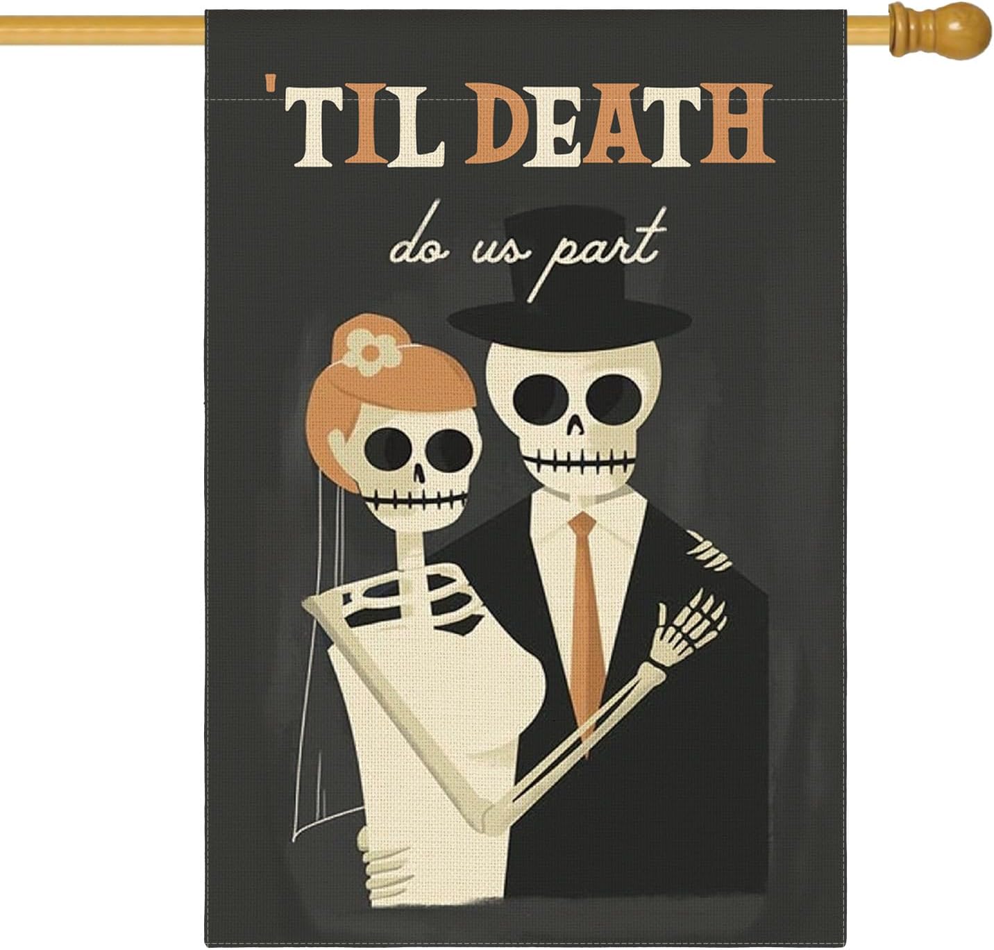 AVOIN colorlife Day of the Dead Until Death Do Us Part Skeleton House Flag Double Sided, Halloween Wedding Yard Outdoor Decorative Flag 28 x 40 Inch