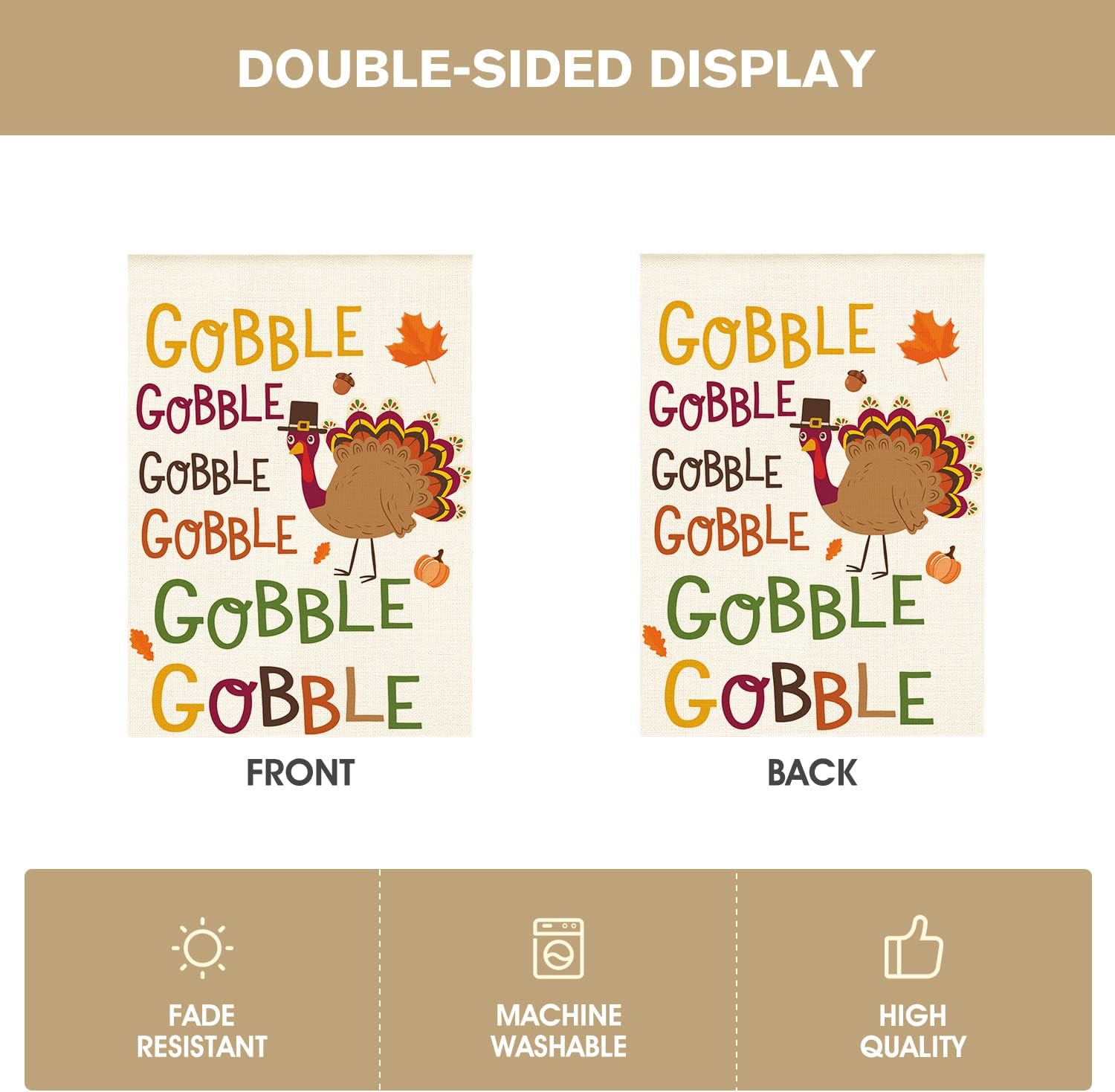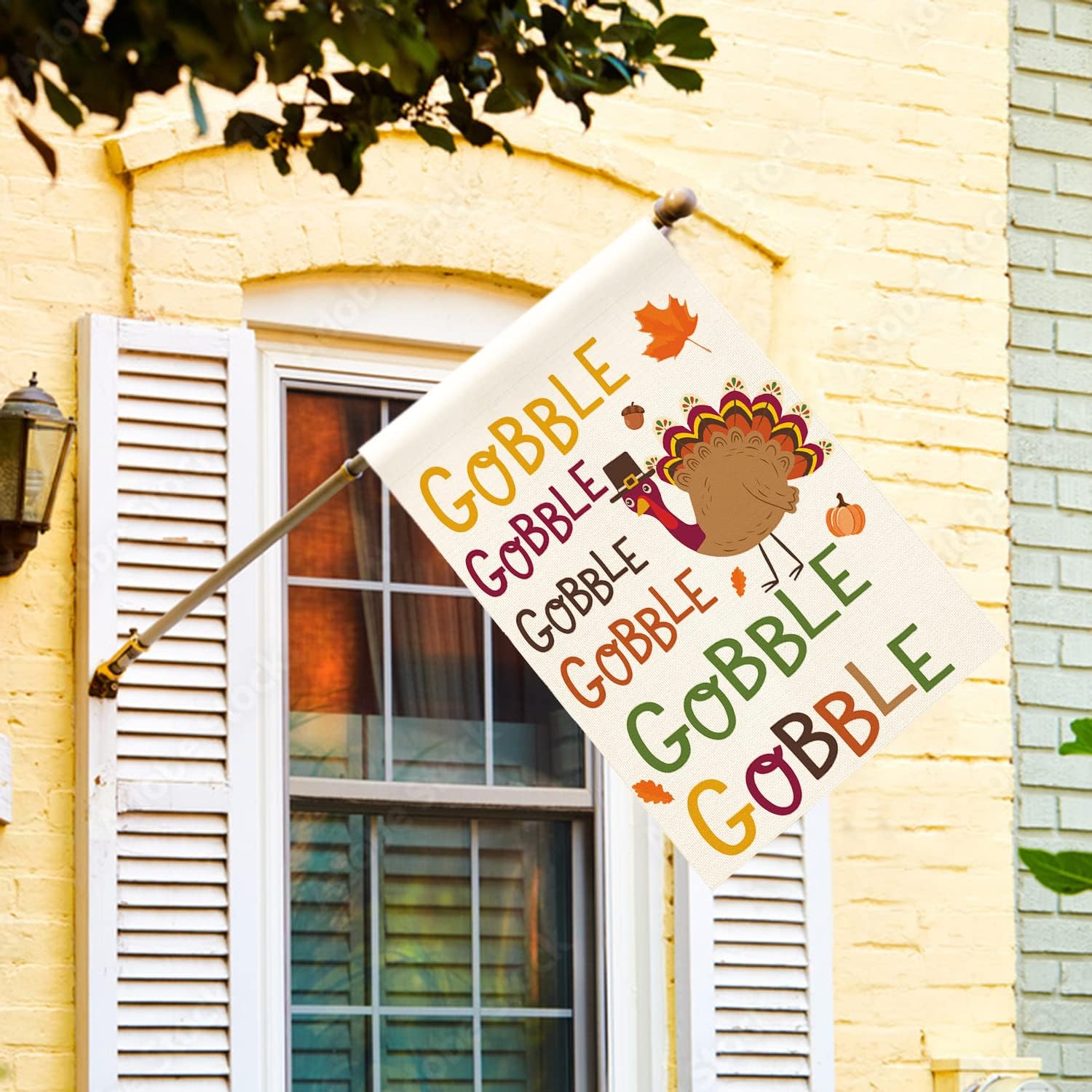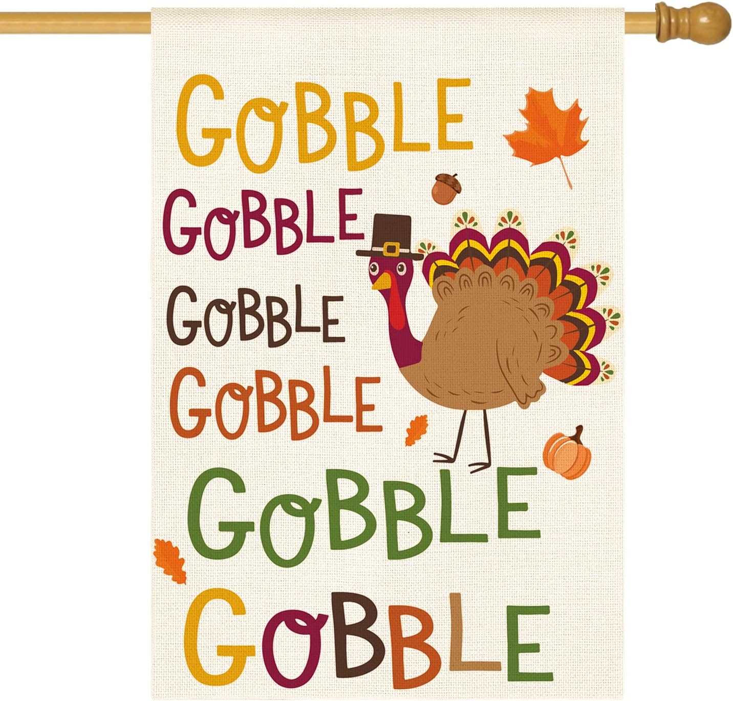 AVOIN colorlife Gobble Gobble Turkey House Flag 28 x 40 Inch Double Sided, Fall Thanksgiving Yard Outdoor Decorative Flag