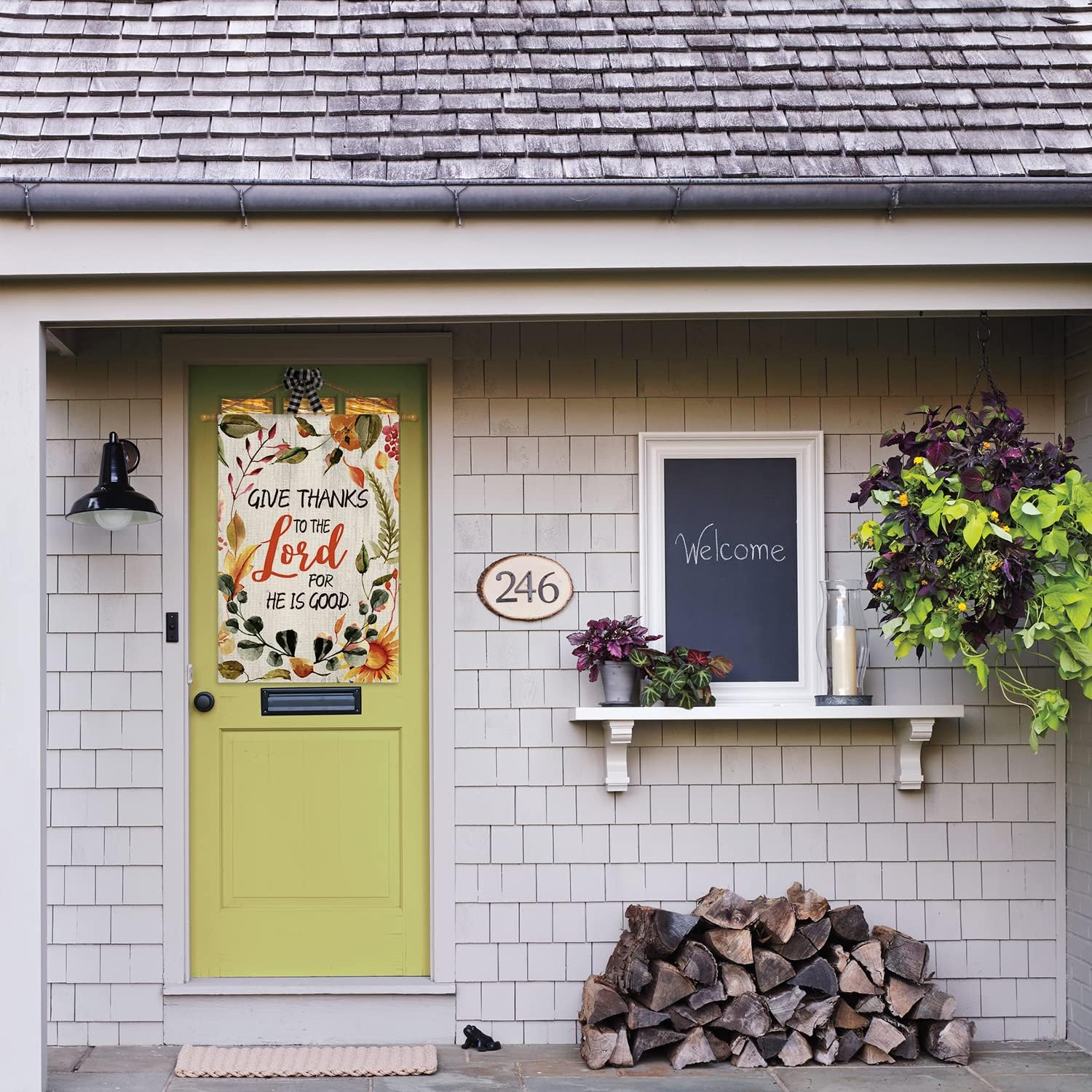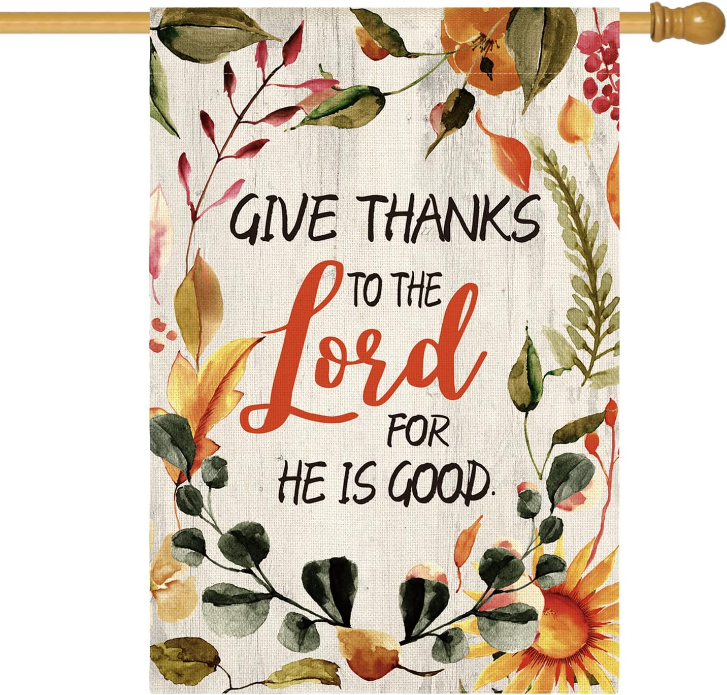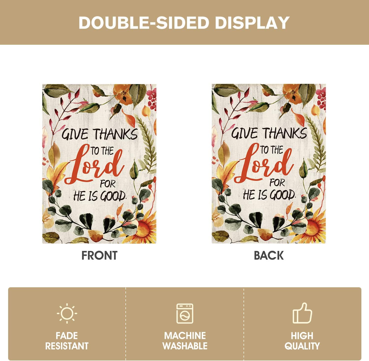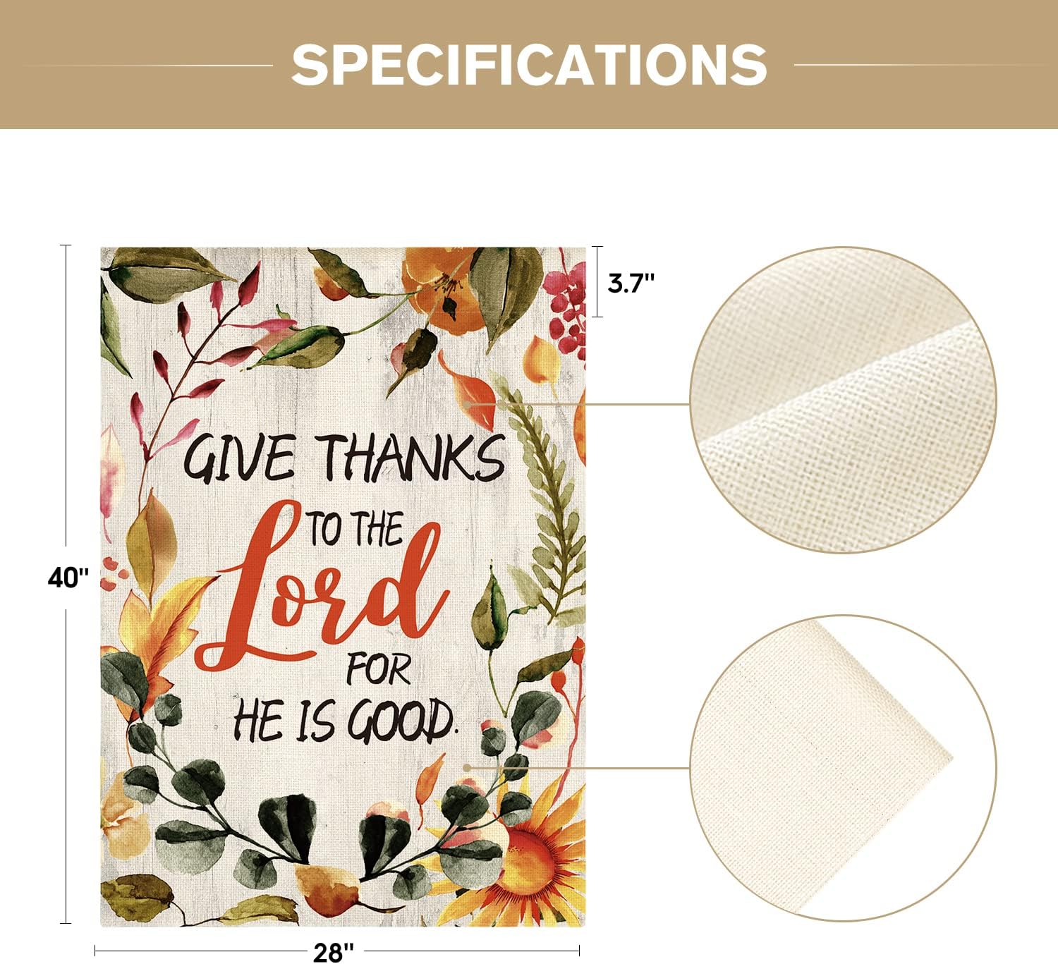 AVOIN colorlife Give Thanks to The Lord For He Is Good House Flag 28 x 40 Inch Double Sided, Fall Thanksgiving Harvest Holiday Yard Outdoor Decorative Flag