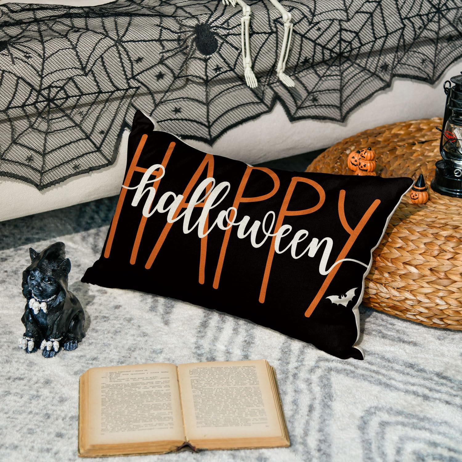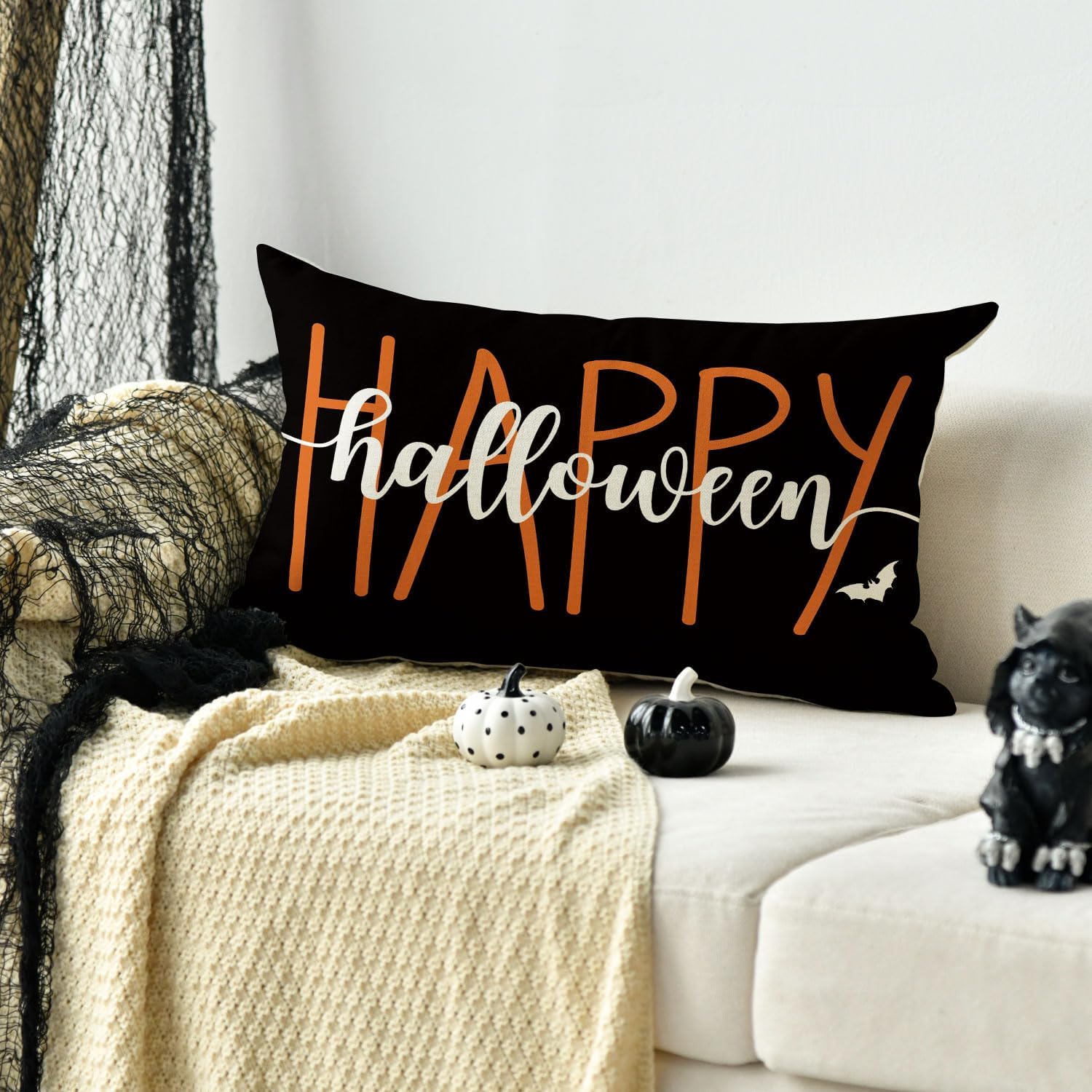 AVOIN colorlife Happy Halloween Throw Pillow Covers, 12 x 20 Inch Bat Cushion Case for Sofa Couch