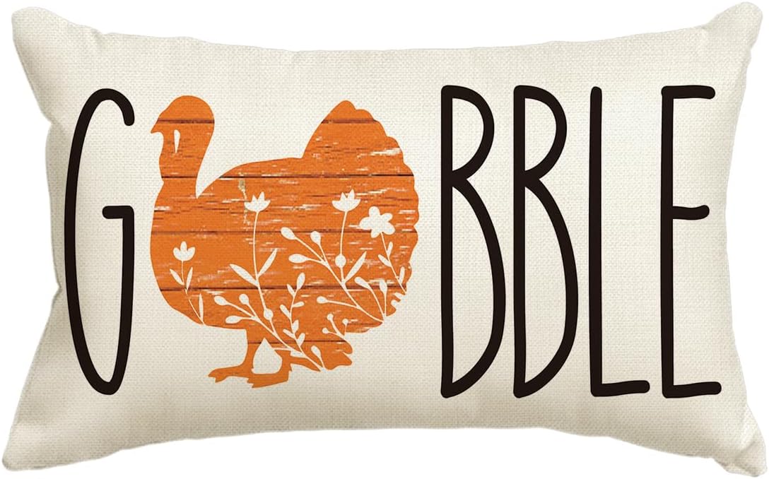 AVOIN colorlife Gobble Thanksgiving Turkey Throw Pillow Cover, 12 x 20 Inch Thanksgiving Fall Cushion Case for Sofa Couch