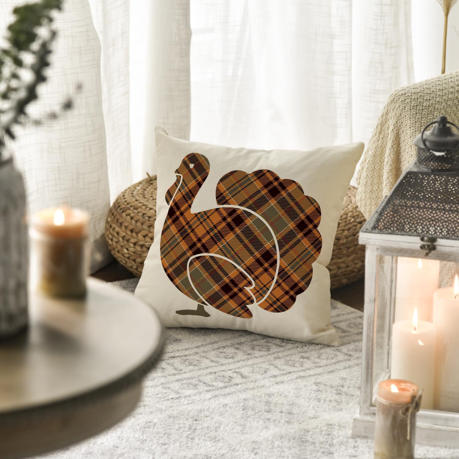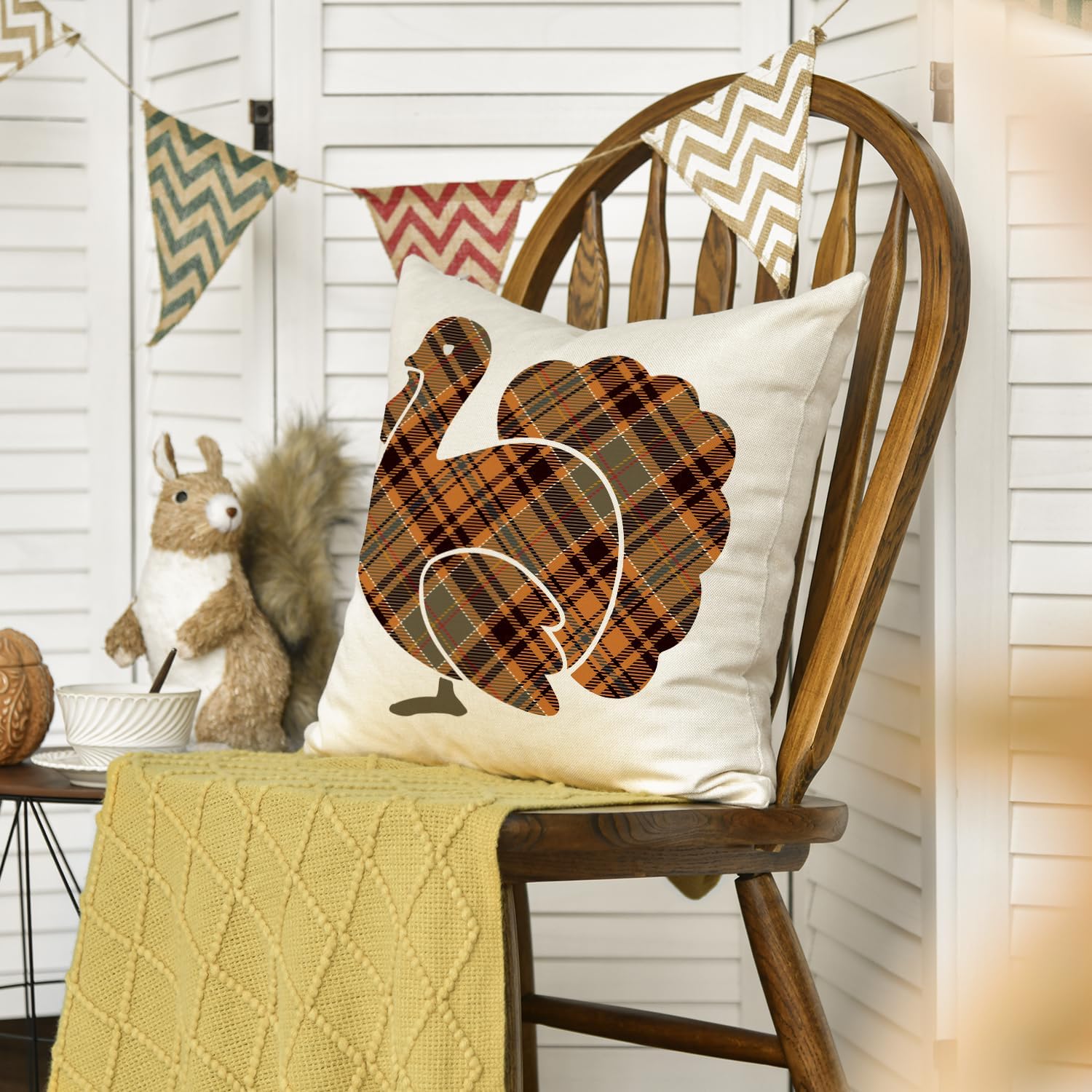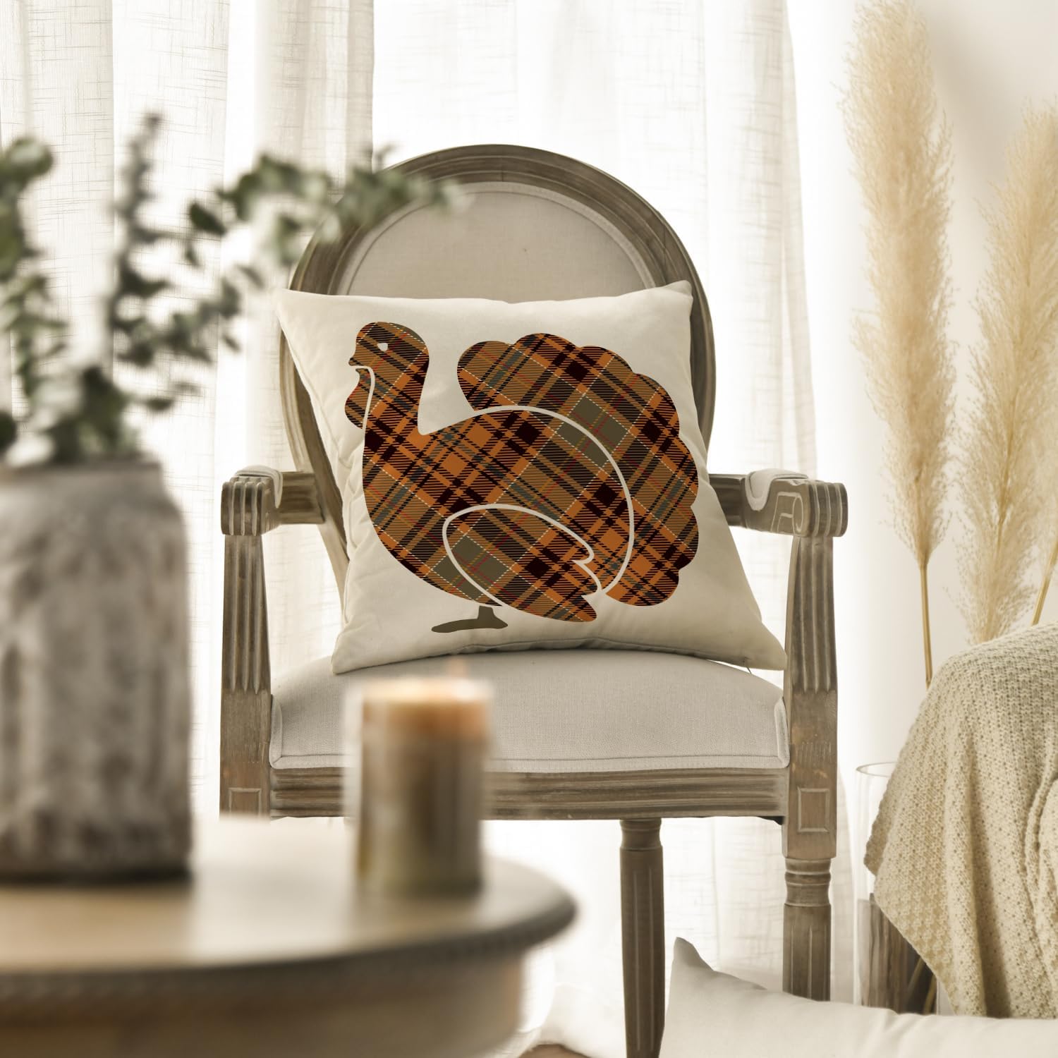 AVOIN Buffalo Check Plaid Turkey Throw Pillow Cover, 18 x 18 Inch Fall Thanksgiving Cushion Case Decoration for Sofa Couch