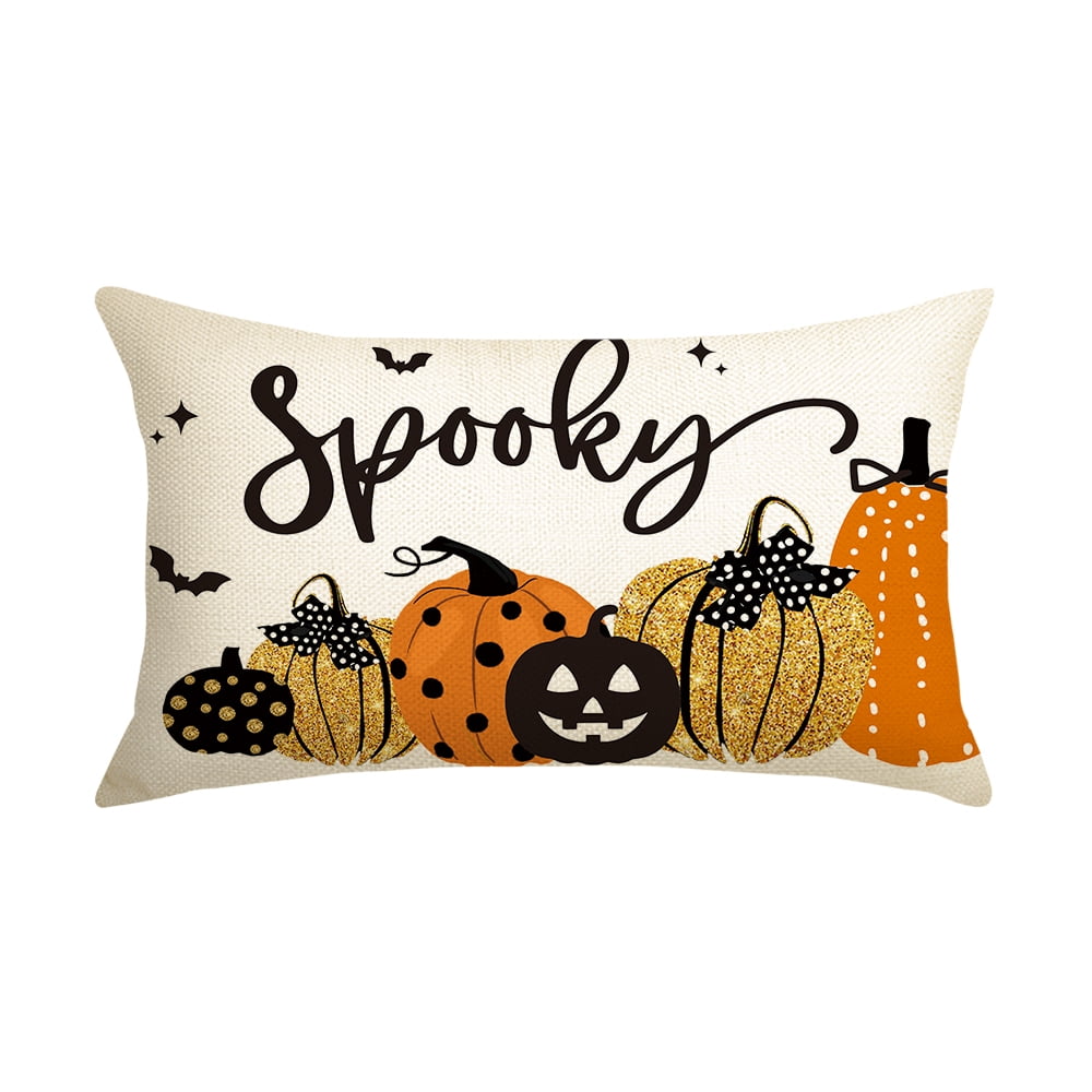 Halloween Spooky Polka Dot Pumpkin Throw Pillow Cover, 12 x 20 Inch Bat Horror Cushion Case Decoration for Sofa Couch