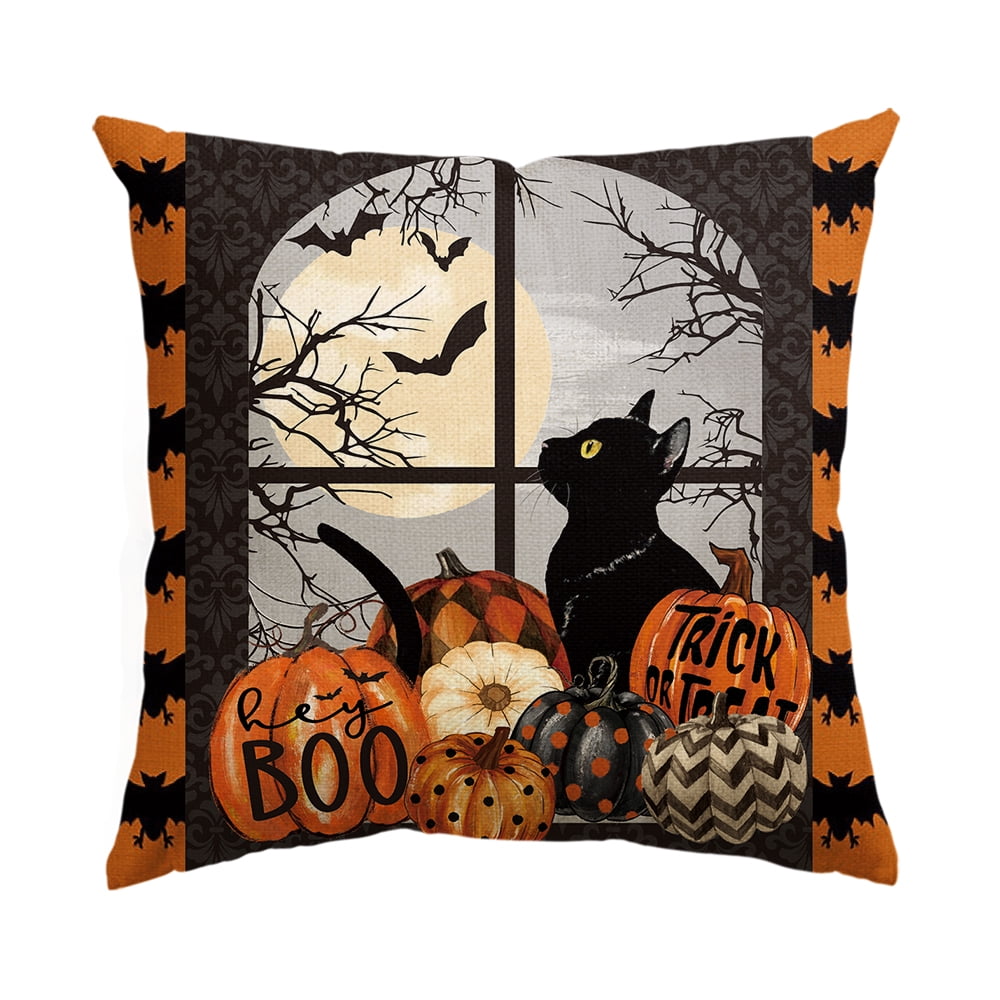 Pumpkin Bat Trick or Treat Cat Halloween Pillow Cover 18 x 18 Inch