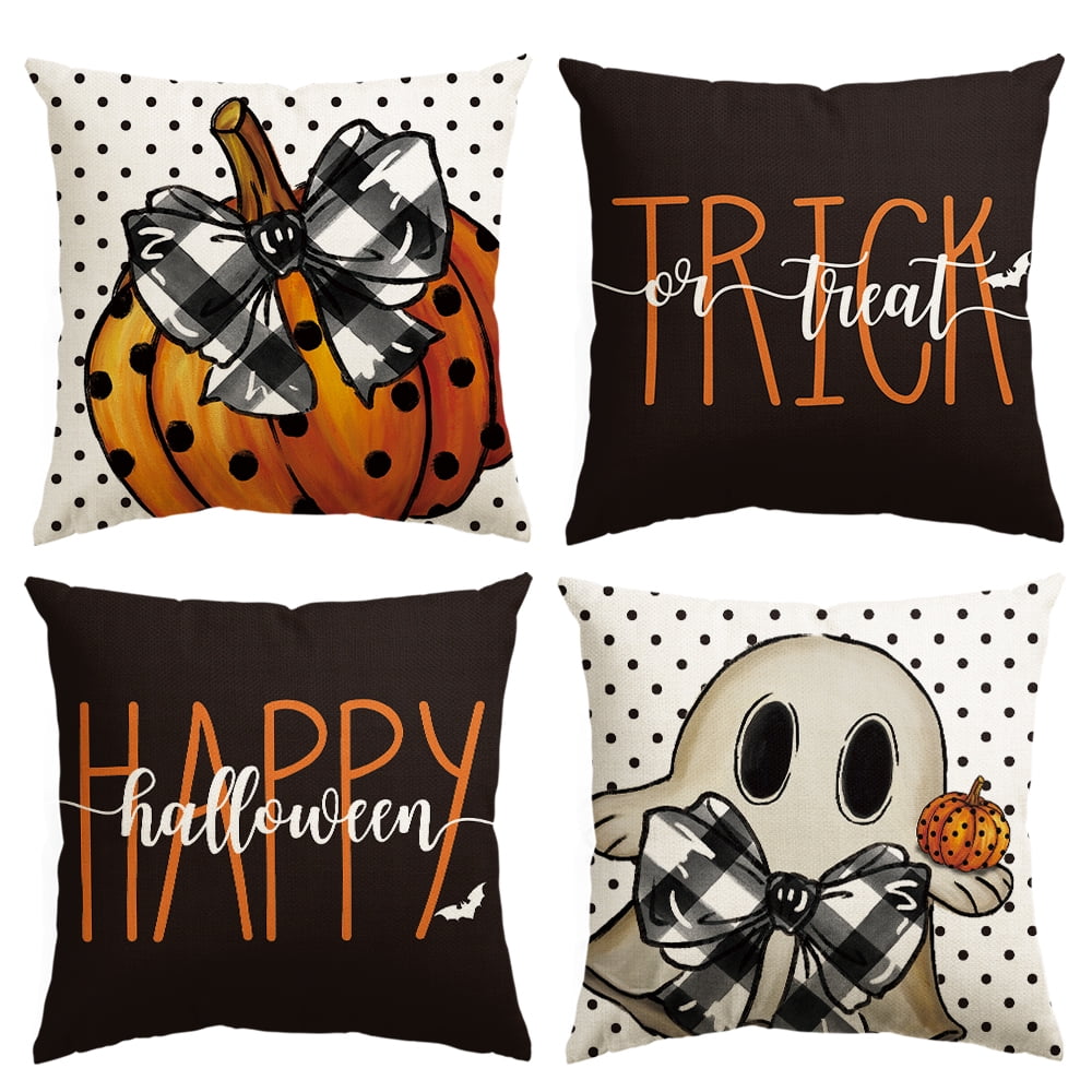 Polka Dot Pumpkin Trick or Treat Ghost Boo Spooky 18 x 18 Inch Halloween Pillow Covers Set of 4