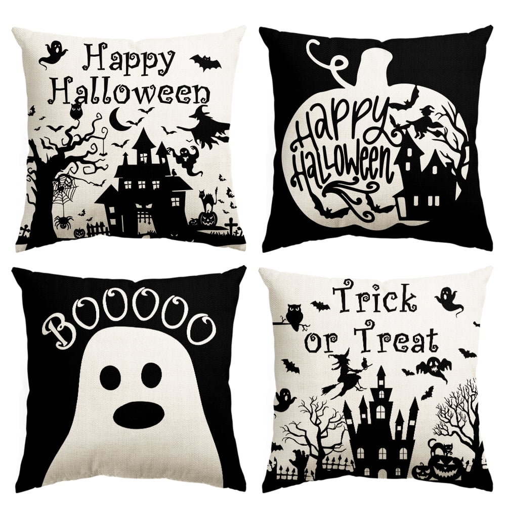 Jack-O'-Lantern Dead Tree Witch Ghost Bat Halloween Throw Pillow Cover 18 x 18 Inch Decorative Outdoor Cushion Covers Set of 4